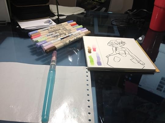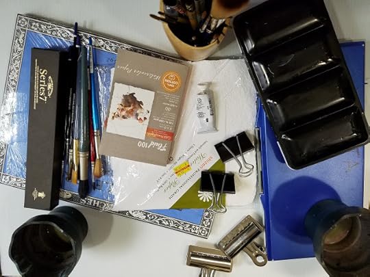 Here's my watercolor setup augmented with an additional palette for mixing, and the piecemeal Winsor and Newton watercolors mentioned above. Colors weren't really selected for the type of work I wanted to do, just due to personal preference.Works created with the above palette: