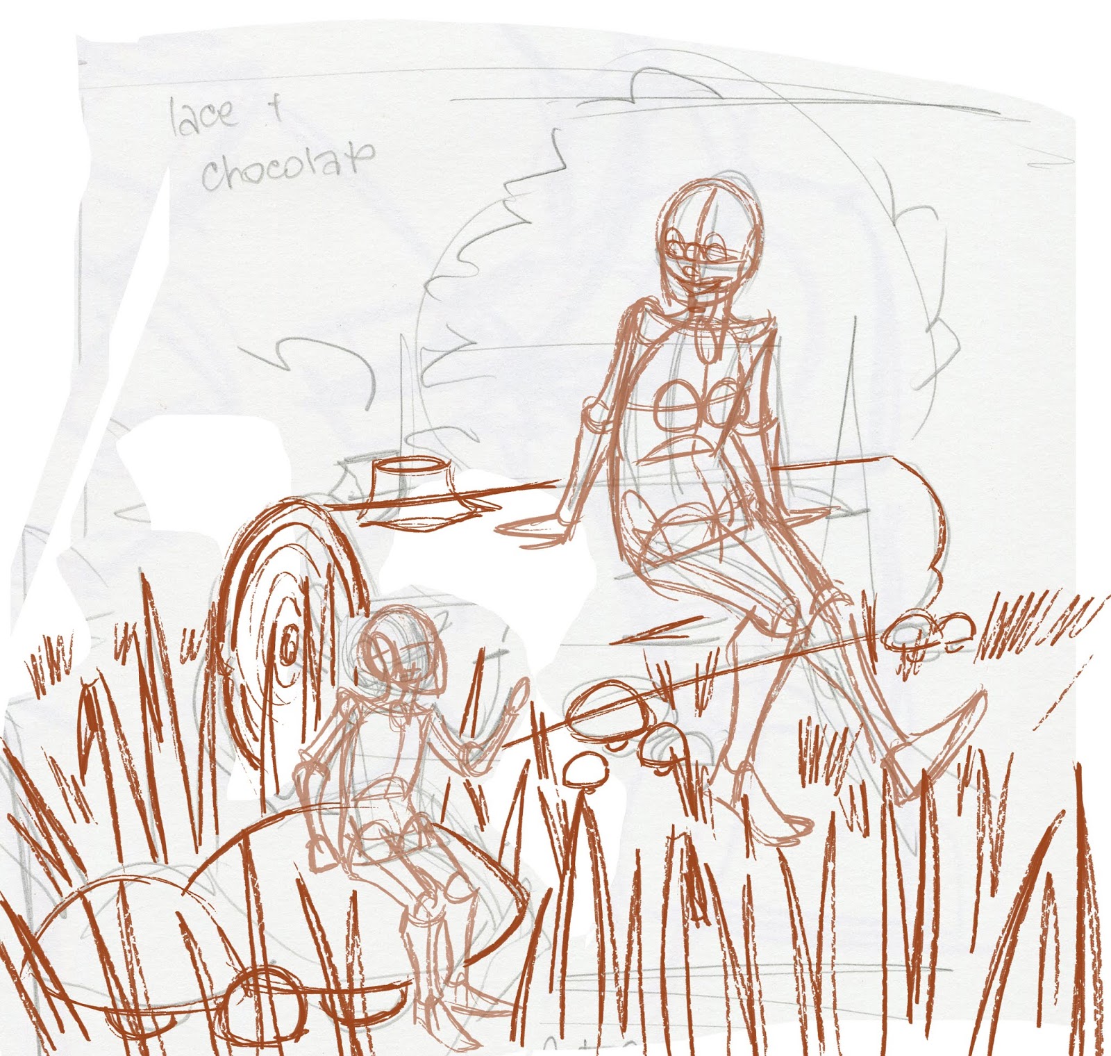 With the next example, I did a lot of alteration on the basic sketch- moving and resizing things- before committing.