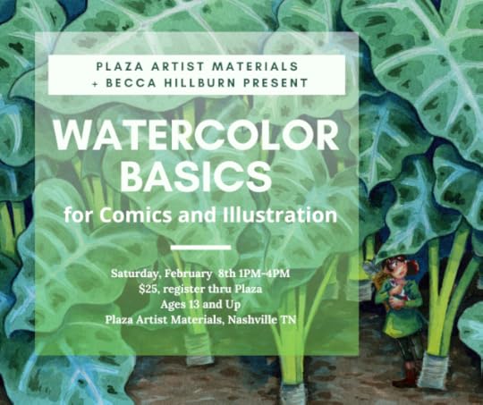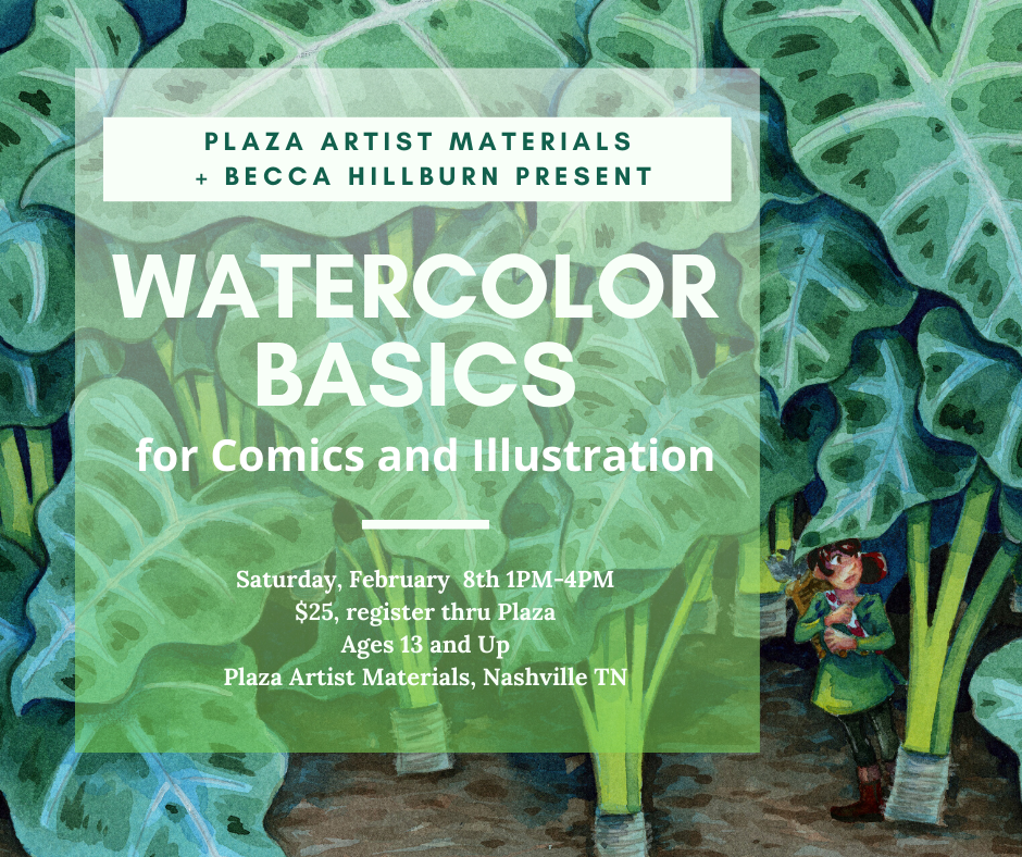 Have you always wanted to learn how to use watercolor for illustration and comic art? Or maybe you know someone who loves traditional media art and would be interested in expanding their experience?I’m teaching a class on watercolor for comic and illustration art through Plaza Artist Materials in Nashville, TN, on Saturday, February 8th! It's called How to Use Watercolors on the schedule. Even if you know absolutely nothing about watercolor, you’re welcome to sign up and take this class! We’ll be providing everything you need for three hours of watercolor fun including paints, papers, and snacks! If you want to learn how to use your own watercolor supplies, bring them along! The class is from 1-4PM, and I welcome artists of all ages and experience levels to come learn the secrets to watercolor for comics.I’ll provide you with a list of recommended supplies, if you want to start shopping after the class is over, and once you get home, you can explore years of watercolor tutorials and reviews to help bolster your studies on Nattosoup Studio Art and Process Blog and my Youtube channel. And of course, you’re welcome to reach out to me via email!