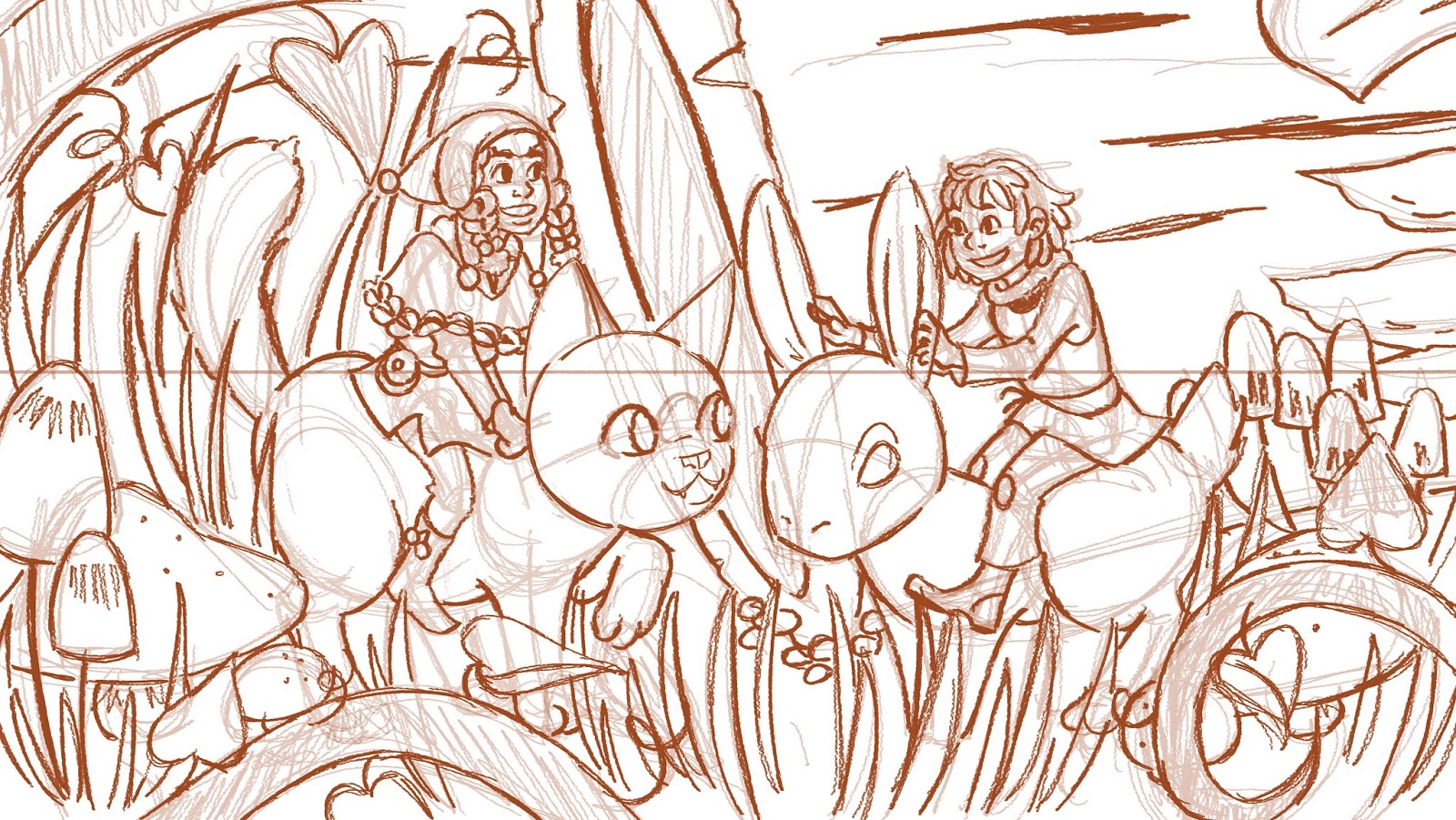 Generally, I do my first sketch in my sketchbook. My brain just handles conceptualization better if I'm staring at paper rather than a screen. But once the thumbnail is drawn, I'm free to go digital. Sometimes I'll take a quick photo of the sketch with my phone and send it to my computer via Discord, sometimes I'll scan it when I'm putting together my monthly Patron sketchbooks- the transfer method doesn't really matter.