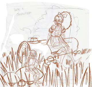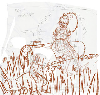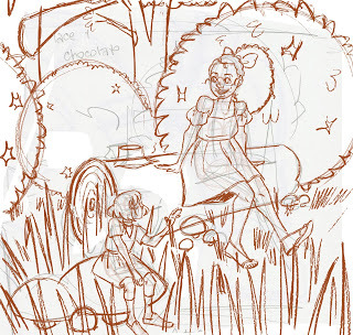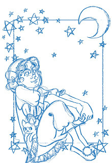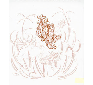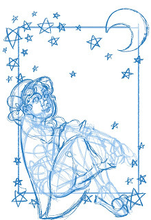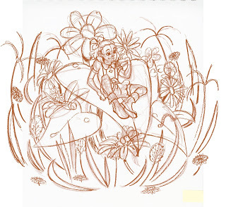 This isn't the end of the process! After this stage, I convert my sketch to grayscale and adjust the contrast so that it's just black and white, then use Duotone to convert it to non photo blue. I then print the bluelines onto the watercolor paper of my choice and either pencil or ink the illustration. The finished illustration will be in watercolor.