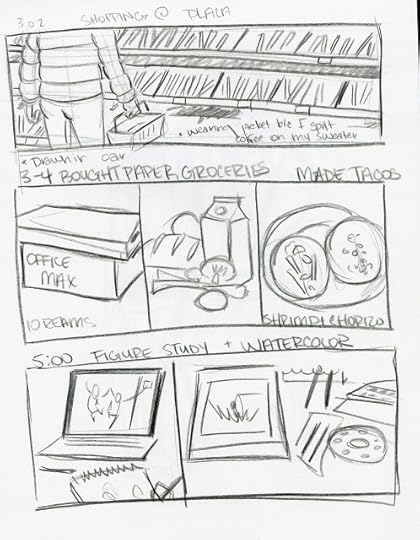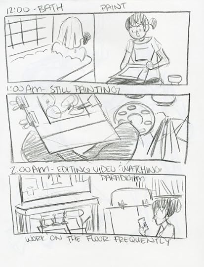 Gives structure to my day- it forces me into a routine, which is both great for ADHD and not so great for my usual work methodsI'm guilty of doing more 'fun' things on Hourly Comic Day so I have something interesting to drawAlso very distracting- it's weird to stop work every hour to quickly draw more work- it's not like it's a real break.Makes it obvious that my schedule is WEIRD.Try to keep it simple and sketchy so I can at least get other work done- it seems like some folks literally dedicate their day to making attractive Hourly Comics, but I draw too slow for thatNice to break up my normal routine of very polished comics with a lot of process and steps to just sketch autobioTry to work in a different format- color pencil, in the sketchbook, super sketchy