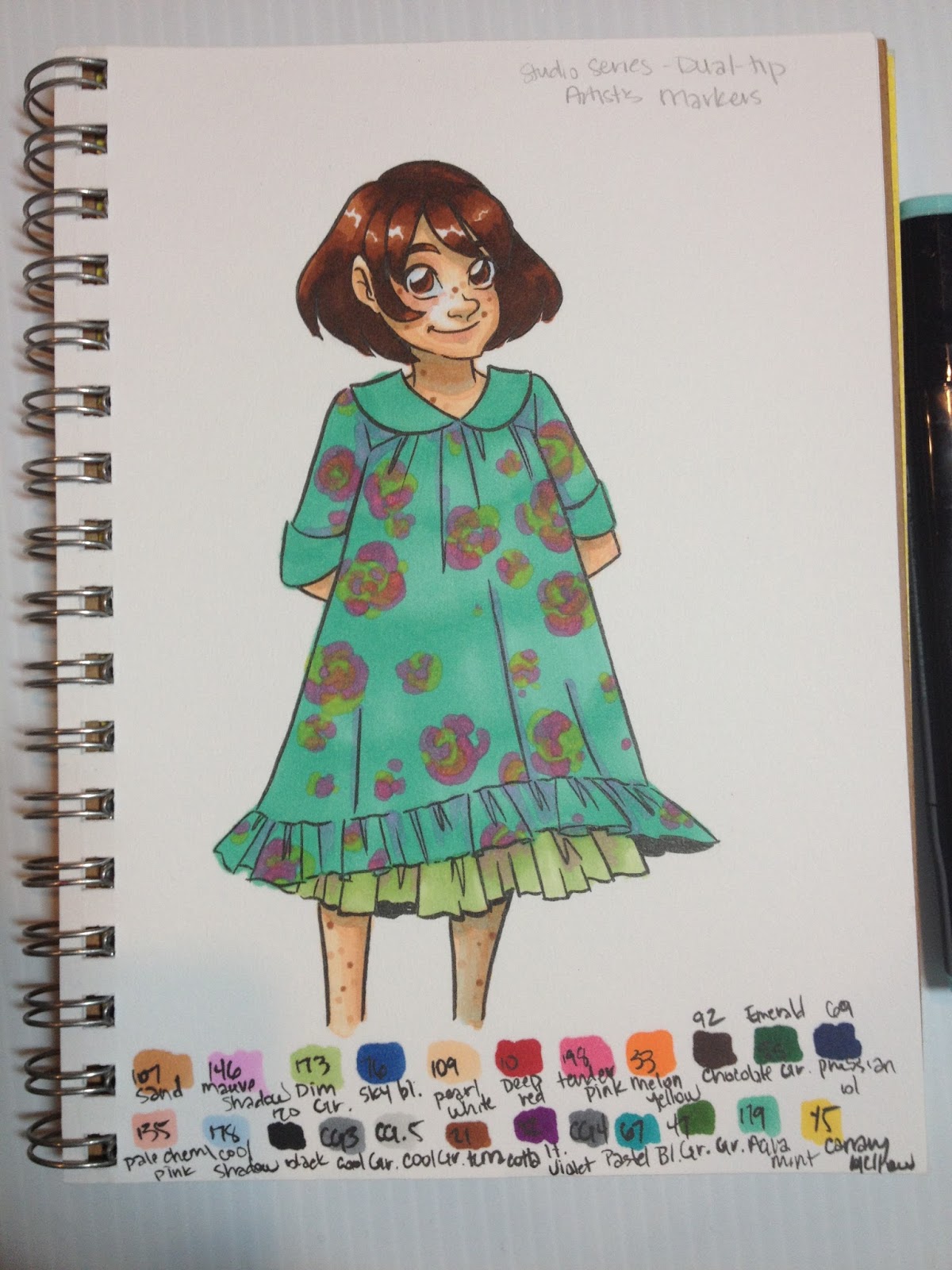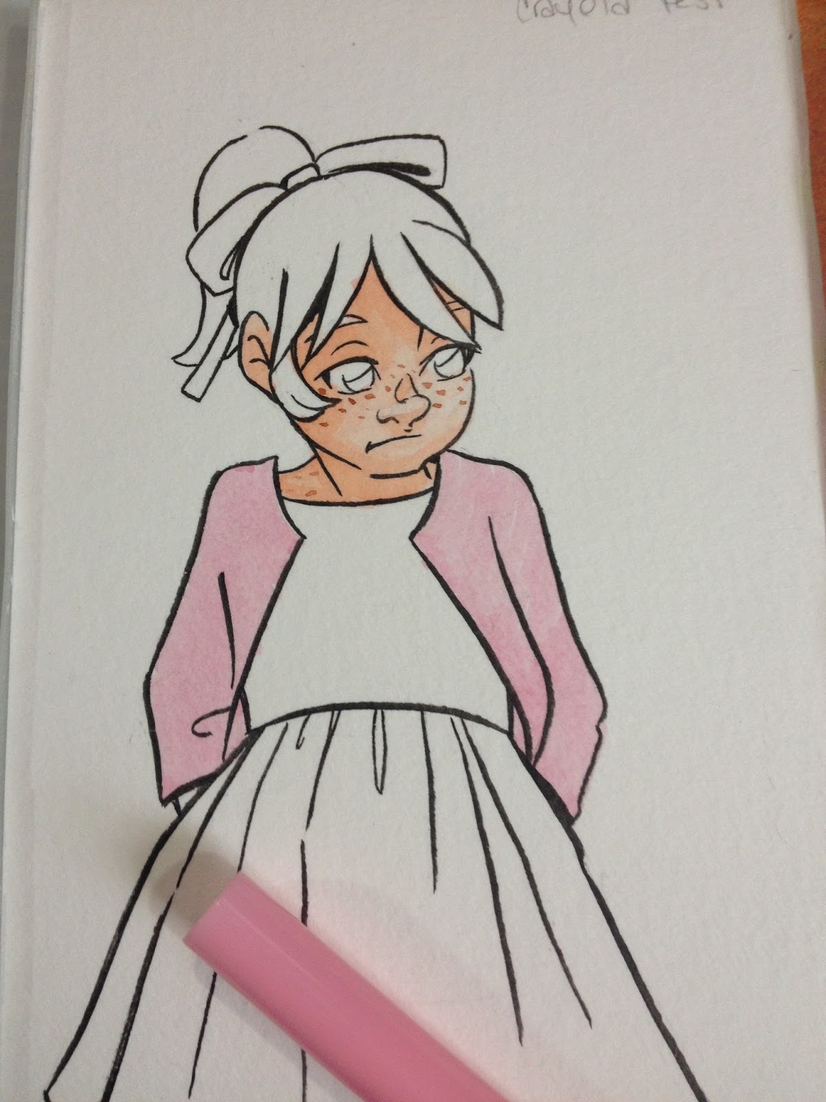 I was a chicken and used the watercolor marker technique (covered in my original Crayola marker review!) of applying color to Kara's skin, but promised myself that I would dive right in on applying marker directly to the paper for everything else.