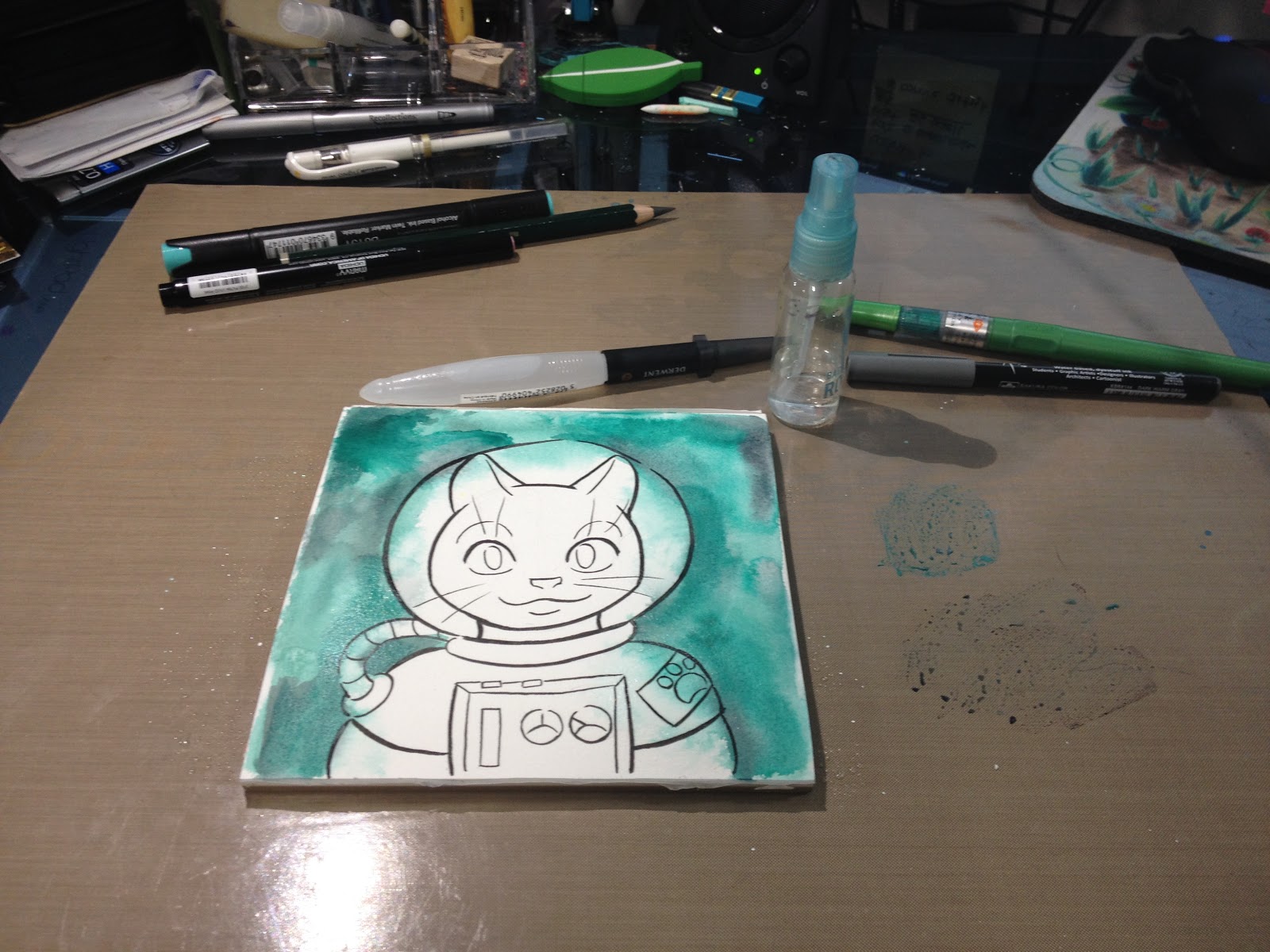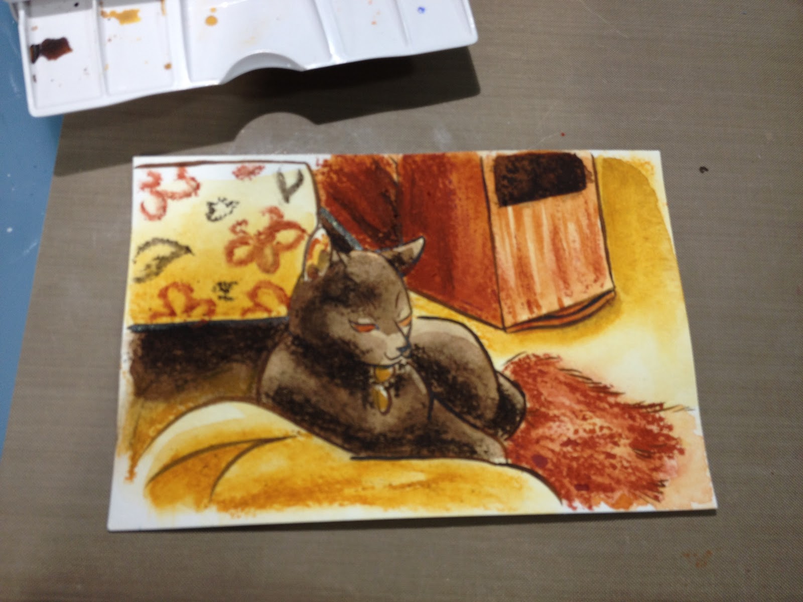 I thought the piece looked a little blank without a background wash, so I tried to apply one after everything was finished.