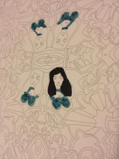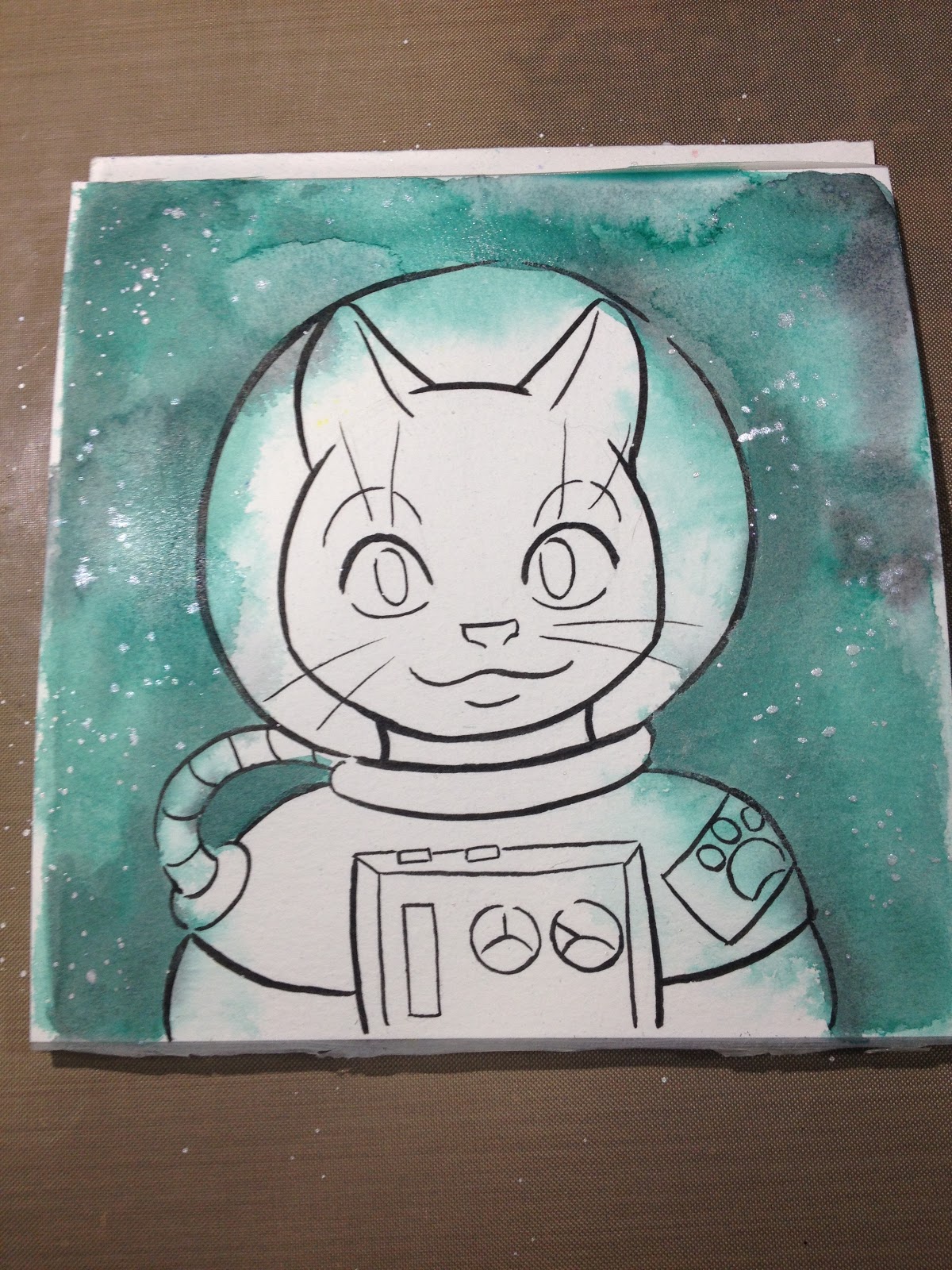 Once that dried, I mixed my Turquoise wash darker, ad reapplied it to the background.