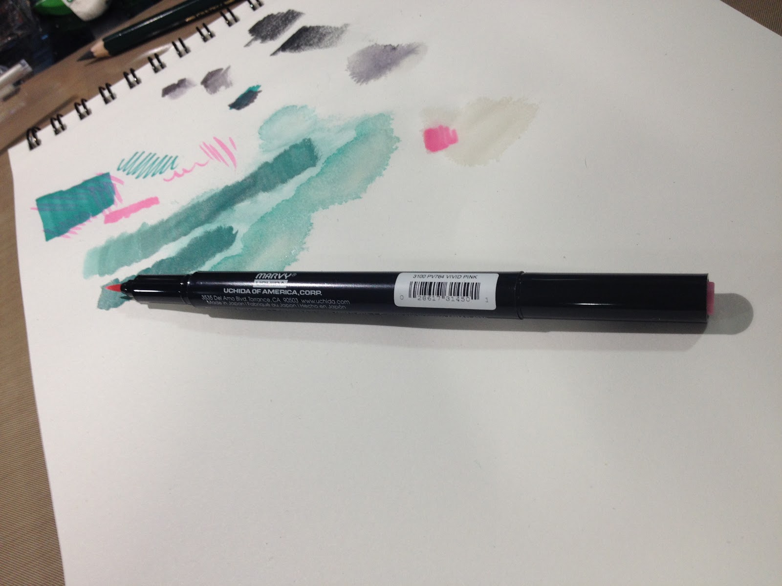 In the end, it's ArtSnacks that continues to shine by sending me fairly novel supplies that can be used in a variety of ways with a little experience and ingenuity. I was most excited by the Marvy LePlume Fine Brush- an alcohol marker with a brush tip as fine as a Pitt Artist Brush (link)- perfect for tiny illustrations or miniscule details. I ended up ordering the entire 36 color set through Jerry's Artarama, although I would have happily ordered it through ArtSnacks if their shop had carried these markers. I also ended up ordering a 20 piece set of Ironlak's twin tipped brush markers for future review, so if this review piqued your interest in the Austrailian marker company, check back often.