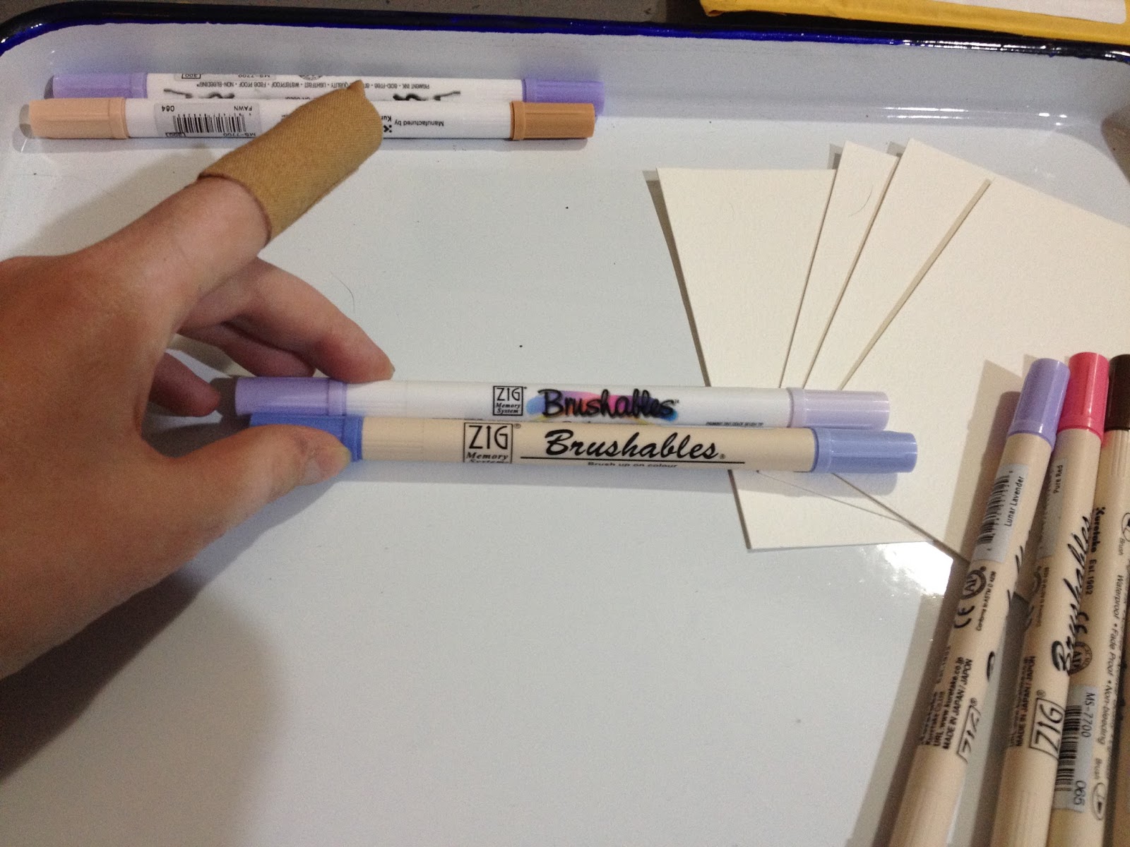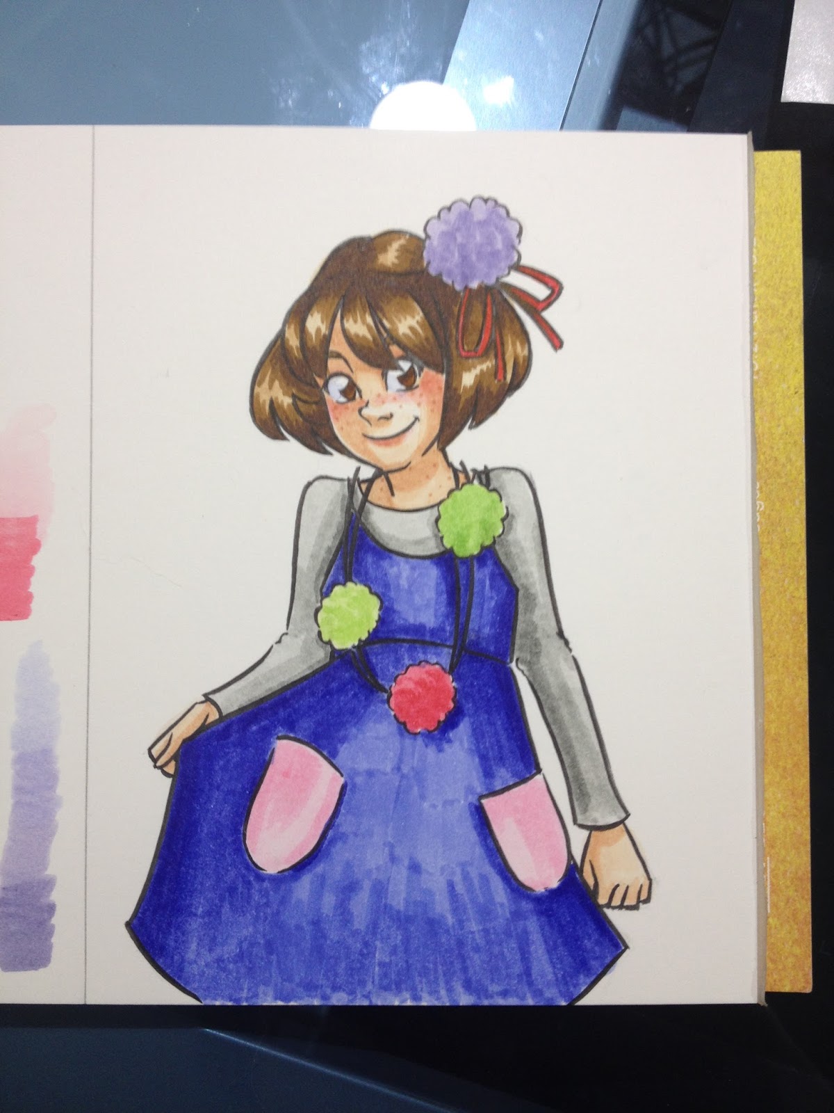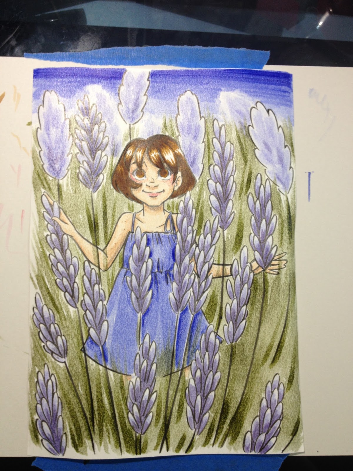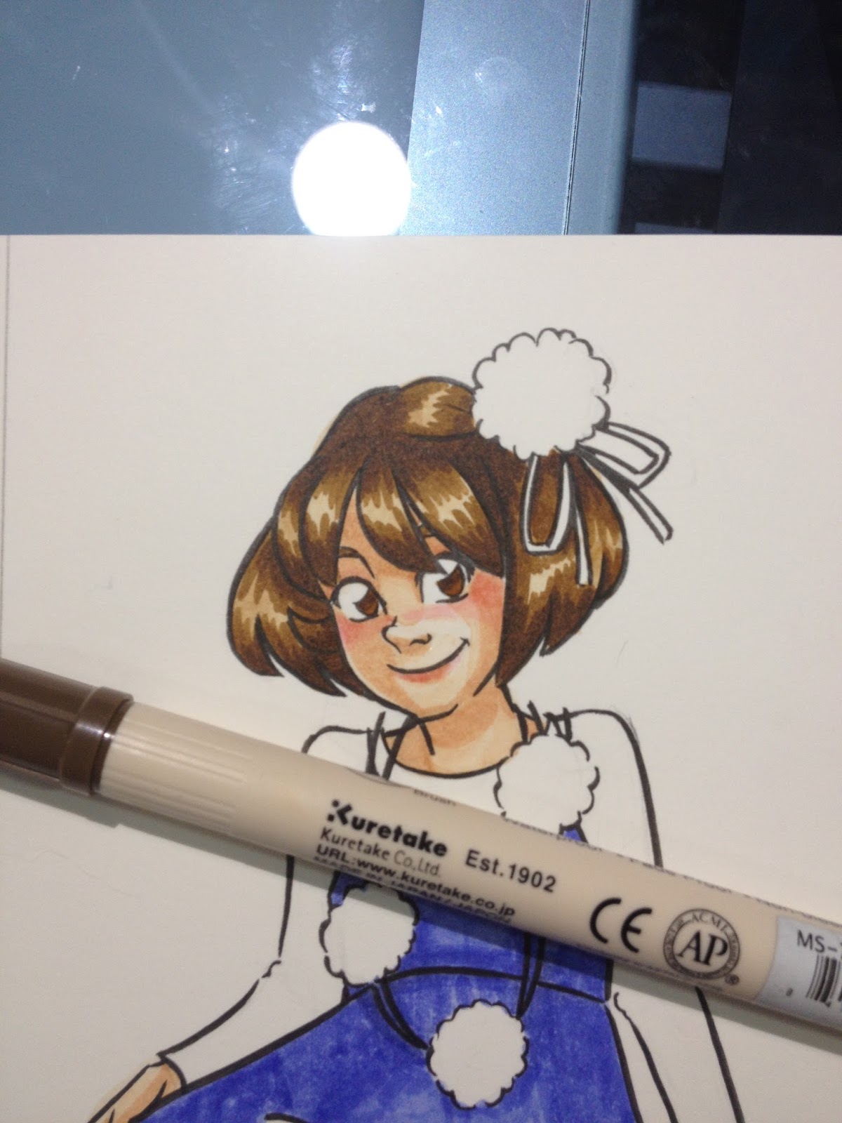 Sailor Mitsuo Aida ink on Winsor and Newton Pigment Marker Paper, Zig Brushables and Zig Art and Graphic TwinThis little illustration of Kara in lavender was completed as part of my review for Zig Brushables waterbased markers. I loved how they handled on the Winsor and Newton Pigment paper, but didn't love that they reactivated my ink. I've since found that pretty much ANYTHING will reactivate Sailor Mitsuo Aida ink on Pigment Marker Paper, so I'm giving the Brushables a shot on a couple different types of coated marker paper.