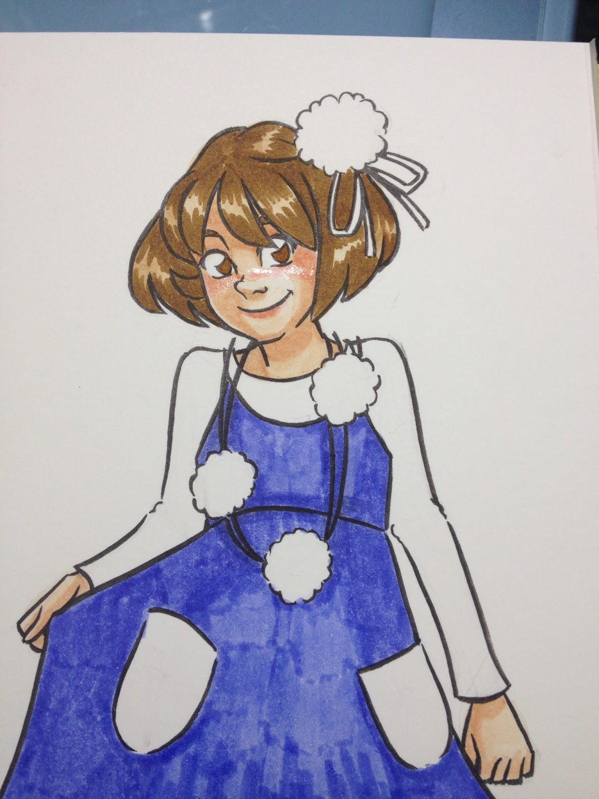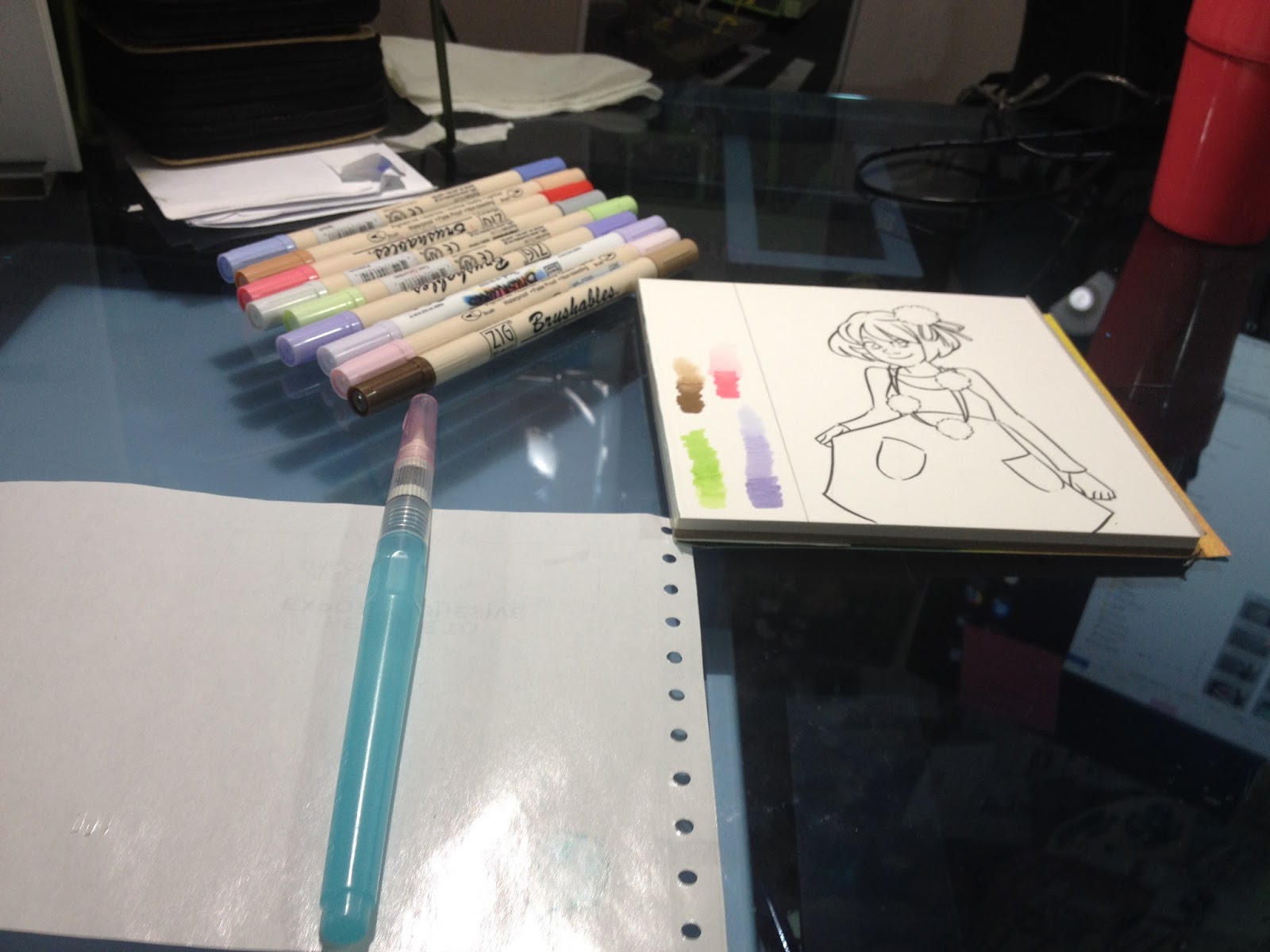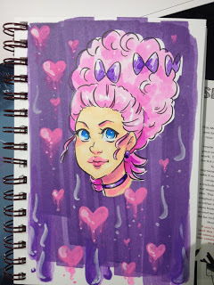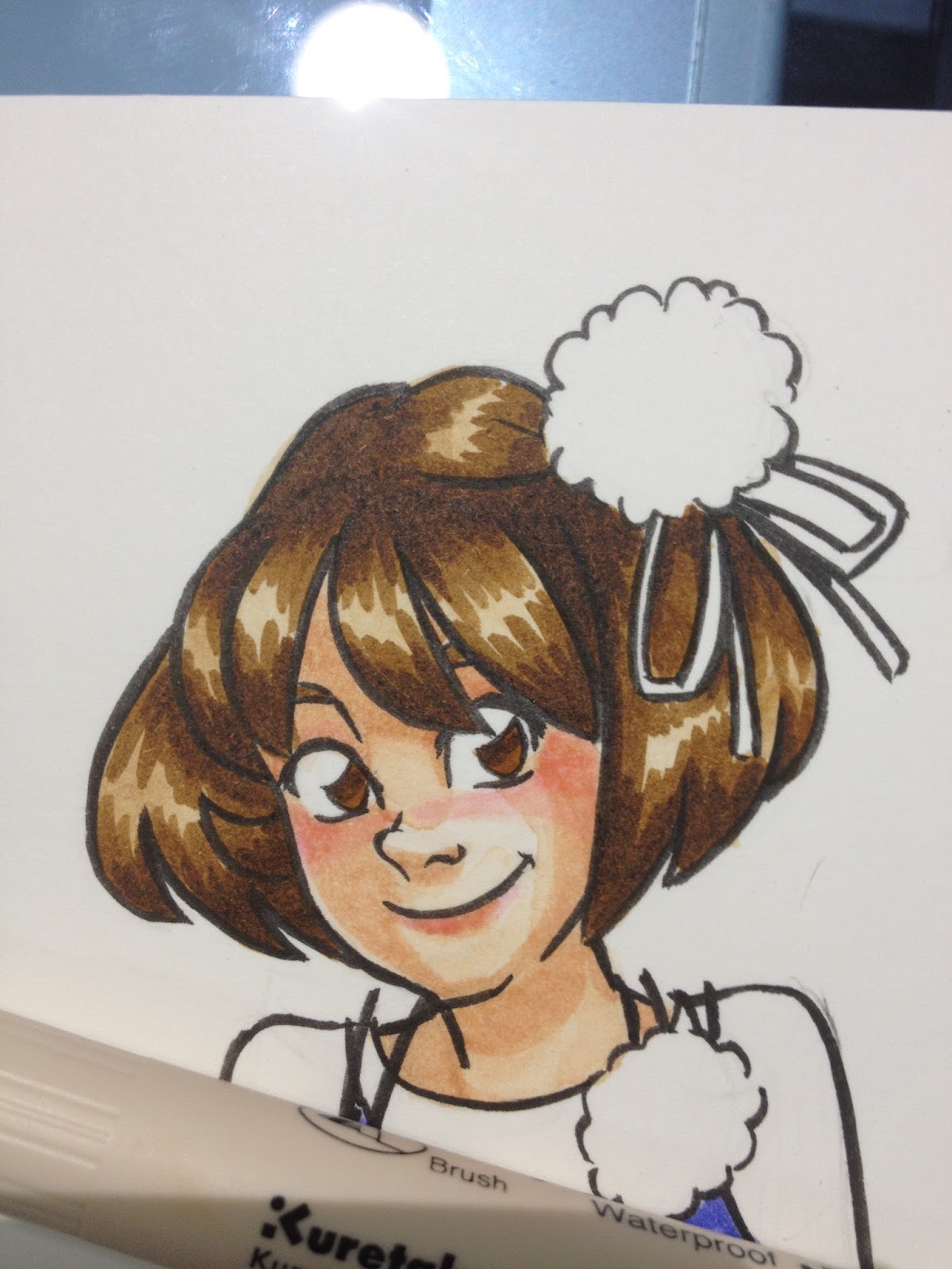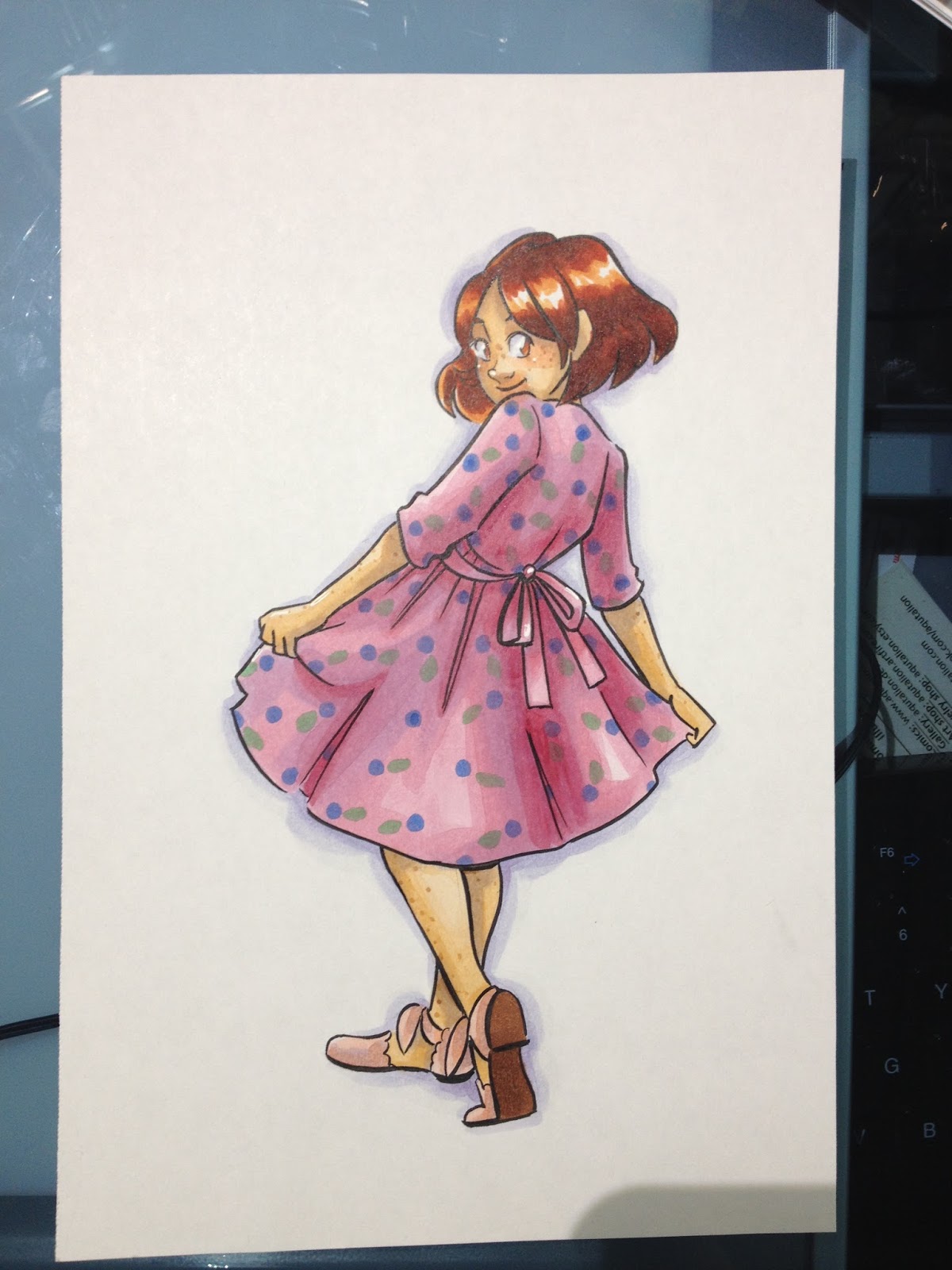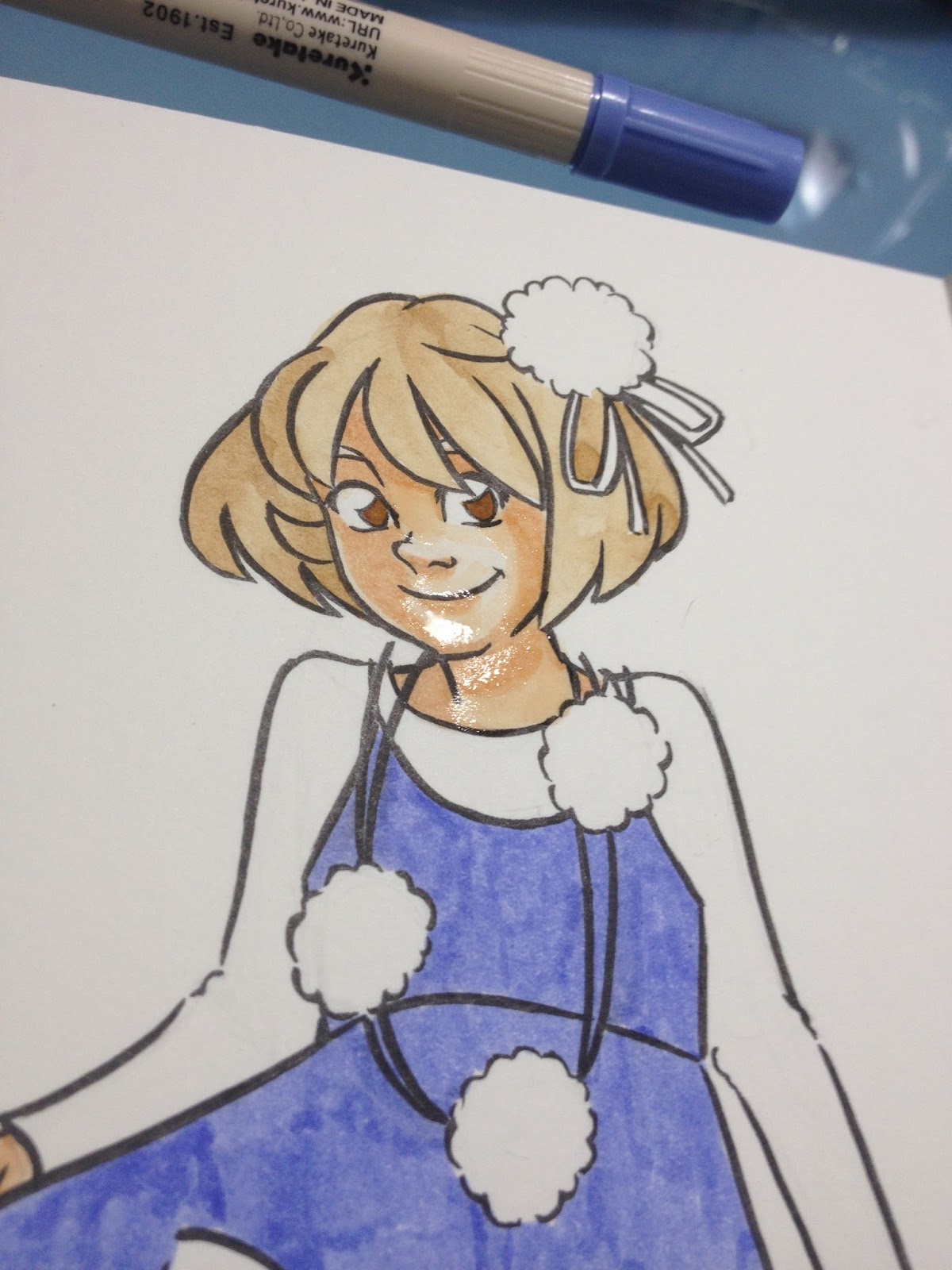 Sailor Mitsuo Aida ink on Winsor and Newton Pigment Marker Paper, Zig Brushables and Zig Art and Graphic TwinThis little illustration of Kara in lavender was completed as part of my review for Zig Brushables waterbased markers. I loved how they handled on the Winsor and Newton Pigment paper, but didn't love that they reactivated my ink. I've since found that pretty much ANYTHING will reactivate Sailor Mitsuo Aida ink on Pigment Marker Paper, so I'm giving the Brushables a shot on a couple different types of coated marker paper.