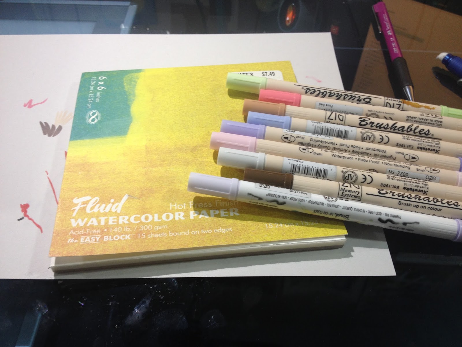 I'm always interested in finding artist quality waterbased markers. I know some of my readers are highly sensitive to strong smells, so alcohol markers may not be an option for them, and waterbased markers are a cheaper alternative that has low if any odor. Unfortunately, most of the waterbased markers I've tested on this blog, when used as waterbased markers, have a tendency to tear up the paper. So far, the only exception to this has been Up and Up's Supertip waterbased markers, which are increasingly hard to find in stores.