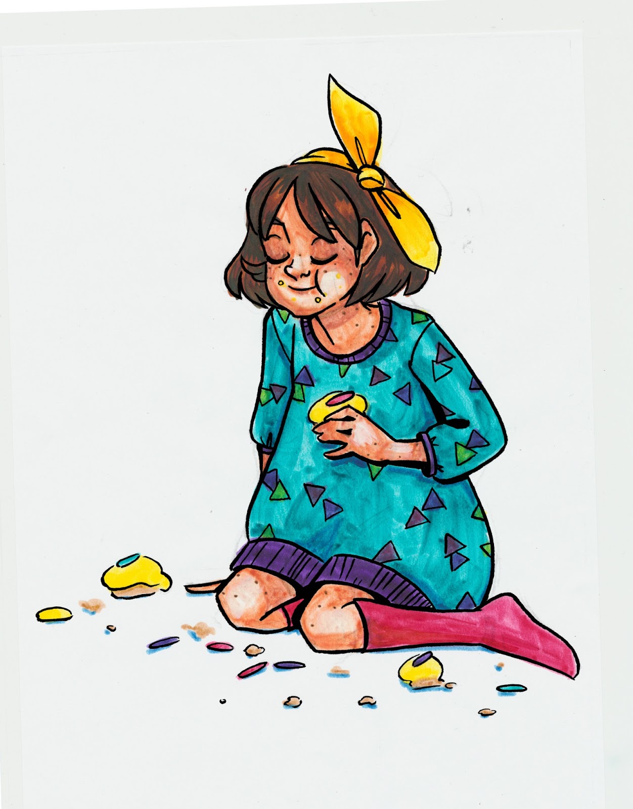 Based on the above illustration of Kara with cinnamon buns, I thought it would be cute to do some Line Tool style 'stickers' of various emotions.