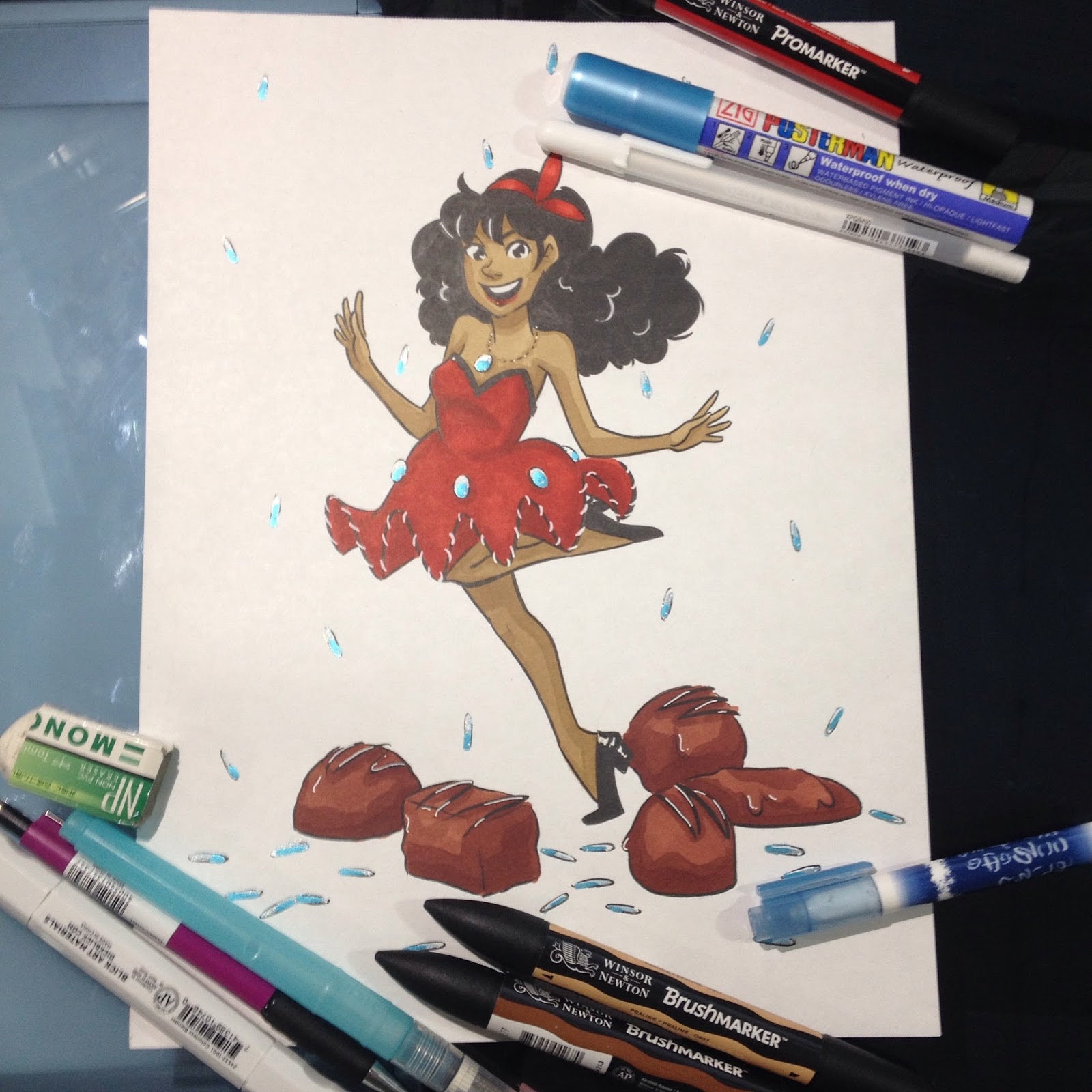 Copics, Blick Studio Brush Markers, Prismacolor Brush markers, Shin Han Twin Touch markers on Strathmore 400 series Mixed Media paperI recorded a time lapse video of the above Copic illustration (which scanned really dark), which should be up on my Youtube channel in a few weeks! New stuff goes up once a week, and it's often a sneak peek into what I'll be reviewing on the blog! This marker piece was completed on Strathmore's 400 series Mixed Media paper.