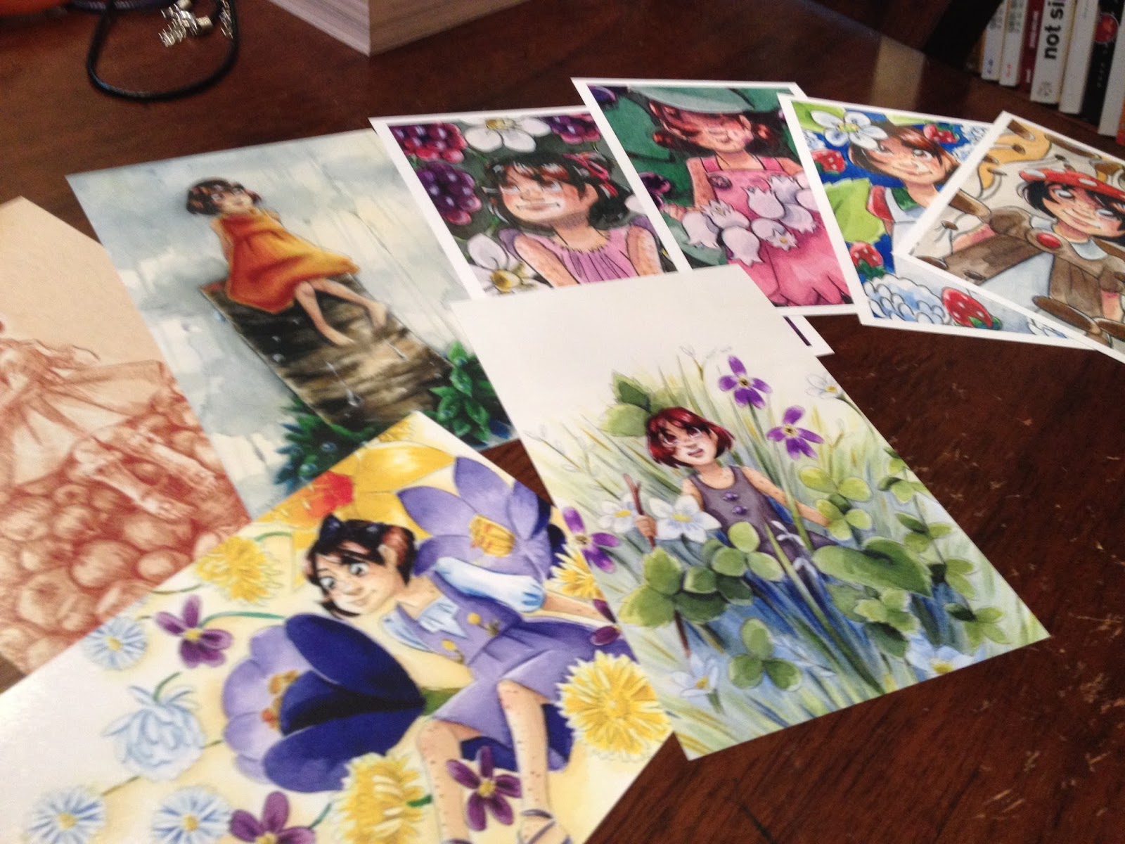 I continue to do conventions, partially because I genuinely enjoy meeting new people, sharing my work in person, and drawing for others. But I regularly struggle with convention-long unstoppable killer migraines. I've cut back on though, so I need each convention to count. I've tried to introduce a variety of items that can be sold while I complete commissions and in between my passion, 7" Kara volumes. In these five years, I've sold hundreds of commissions including many watercolor illustrations, and I've recently started bringing Kara originals to cons in hopes that they inspire customers to request more involved commissions in the future. I work hard to make sure my table continues to evolve through curation, new products, and design.