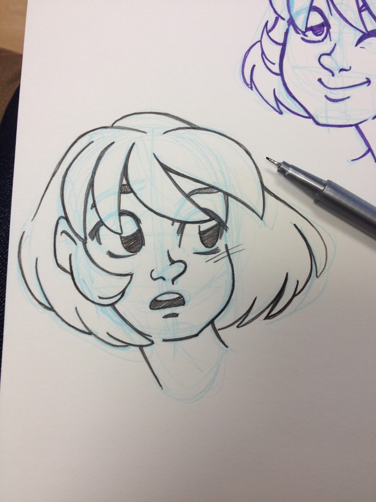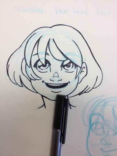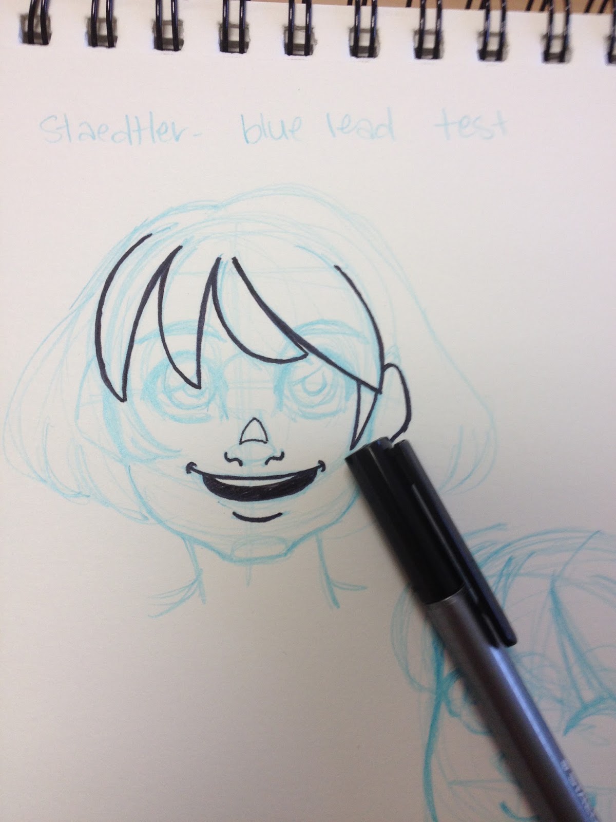 I do still use non photo blue lead and graphite for drawing- most of my Field Test illustrations were drawn with a mechanical pencil and inked with a Mitsuo Aida, and I definitely still use non photo blue lead for convention commissions. The problem, for me, with using NPB in my sketchbook is that I feel obligated to do something to it- pencil it or ink it, but using color pencils leaves me with no such compulsion.