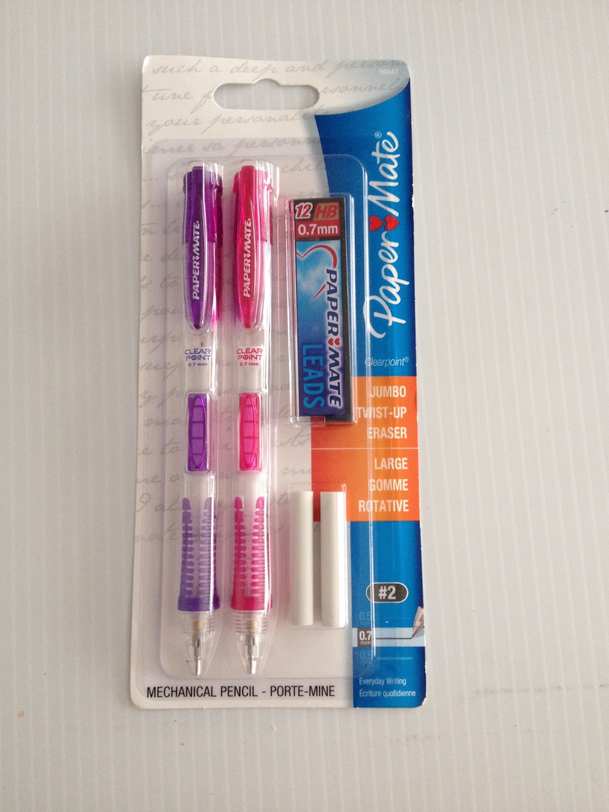 Ideally, I wanted a smallish pencil case that had multiple compartments, or at least, elastic loops, but the Luling Walmart's Back to School section is pretty small compared to larger Walmarts. Your Walmart may have a better selection that has just such a case, or it may have an even smaller selection that offers only the binder cases (which I really wanted to avoid, just because I don't really use them). I ended up buying a Studio C zippered fabric and plastic pencil case, mostly because I love glitter, and I loved glitter as a teenager, and this is probably the case I would've gone for anyway.
