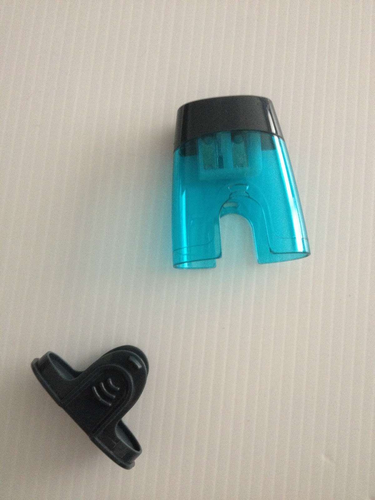 The bottom pinches off to release the shavings, which is a little different from most hand sharpeners, where the top is removable. The top not coming off may be an issue, as it'll be harder to remove broken leads from the blades.