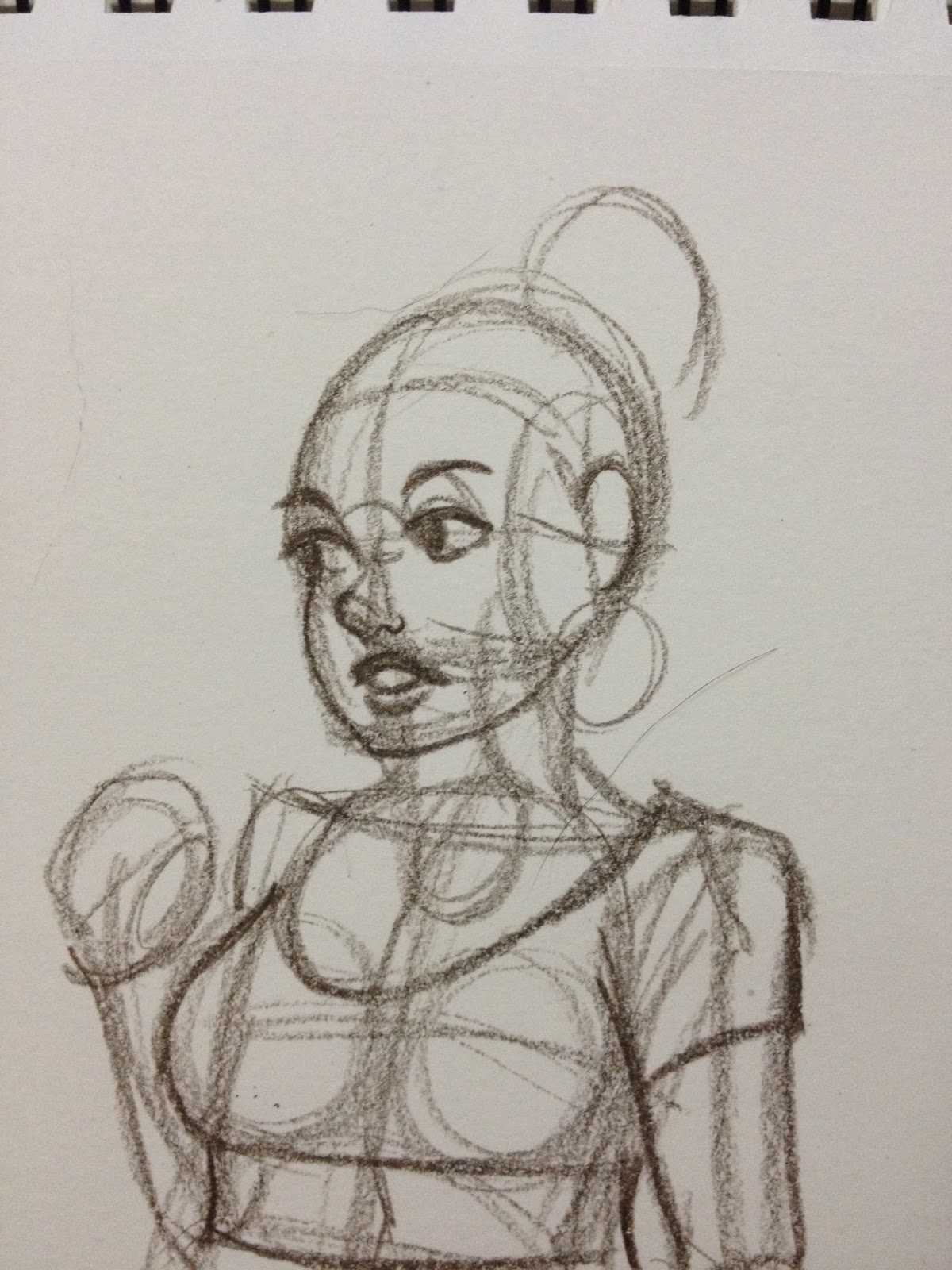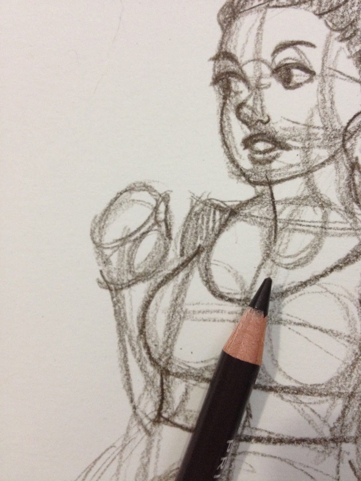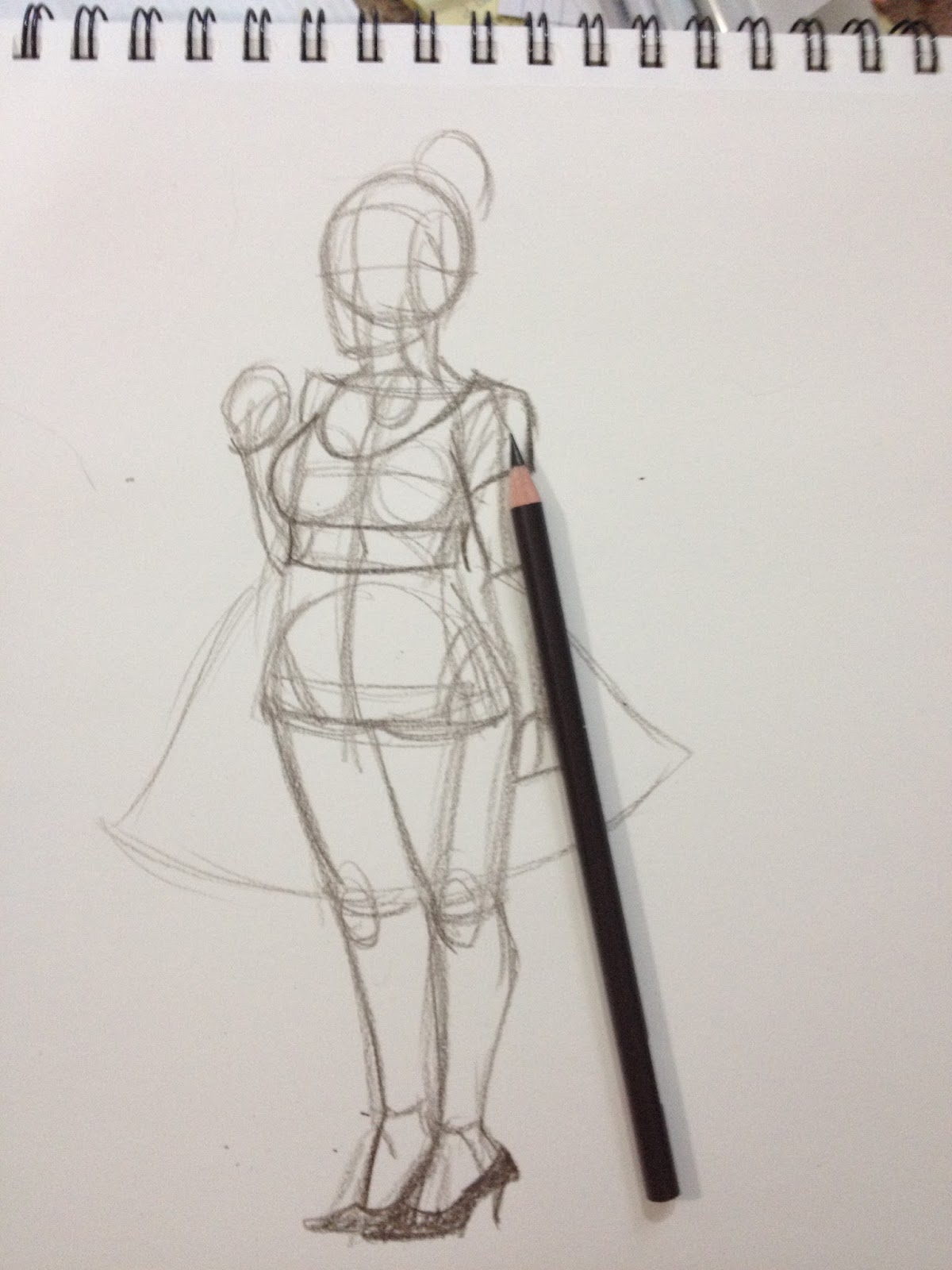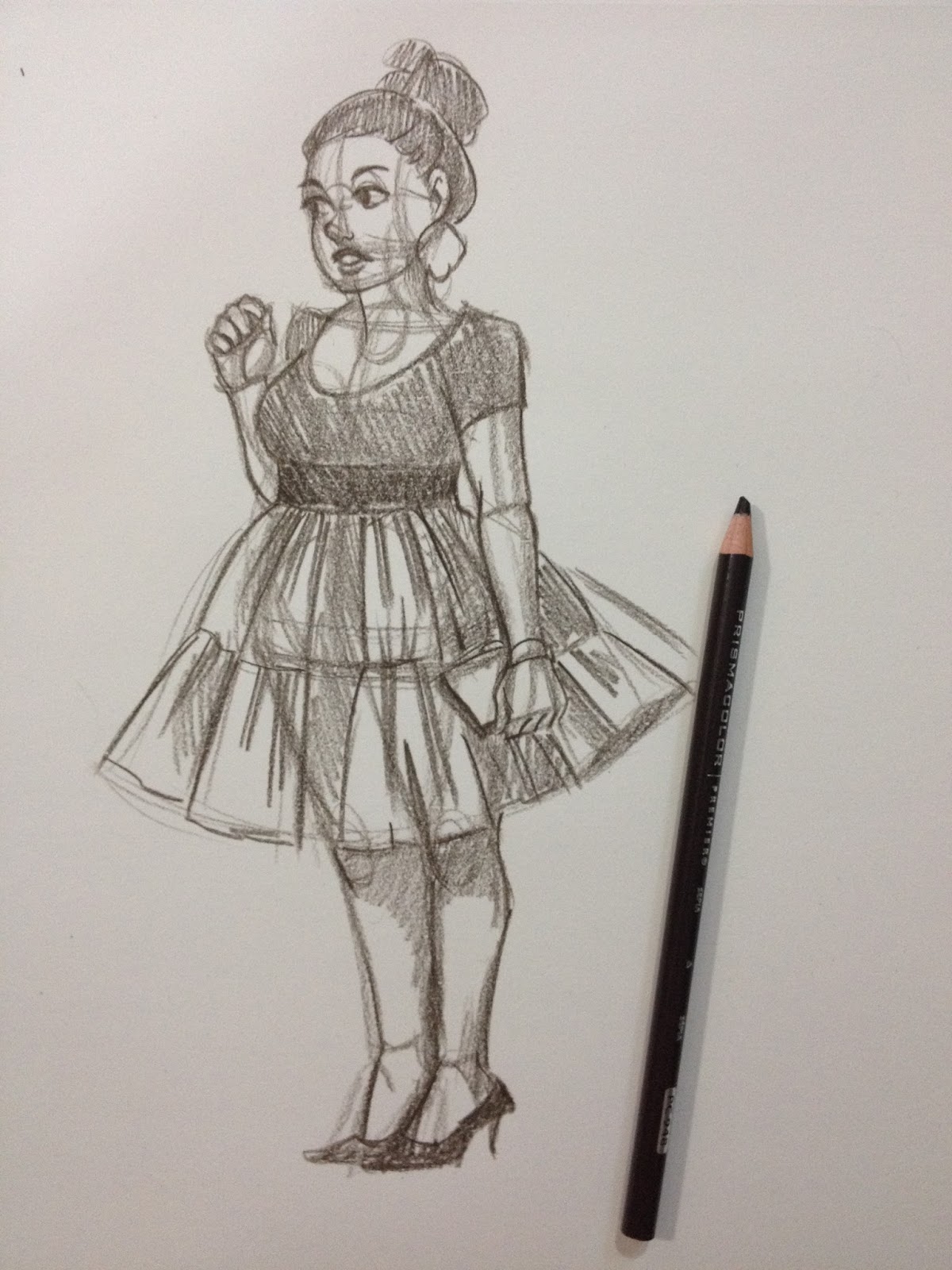 Today I'll show you guys how I went about sketching the below image, which was drawn using reference of a plus sized model from Pinterest. I've found that traditional figure drawing references (including those I linked at the bottom of this post) lack a variety of body types and poses, so you may find it helpful to search for bodybuilders, plus size models, and dancers to help develop your range.