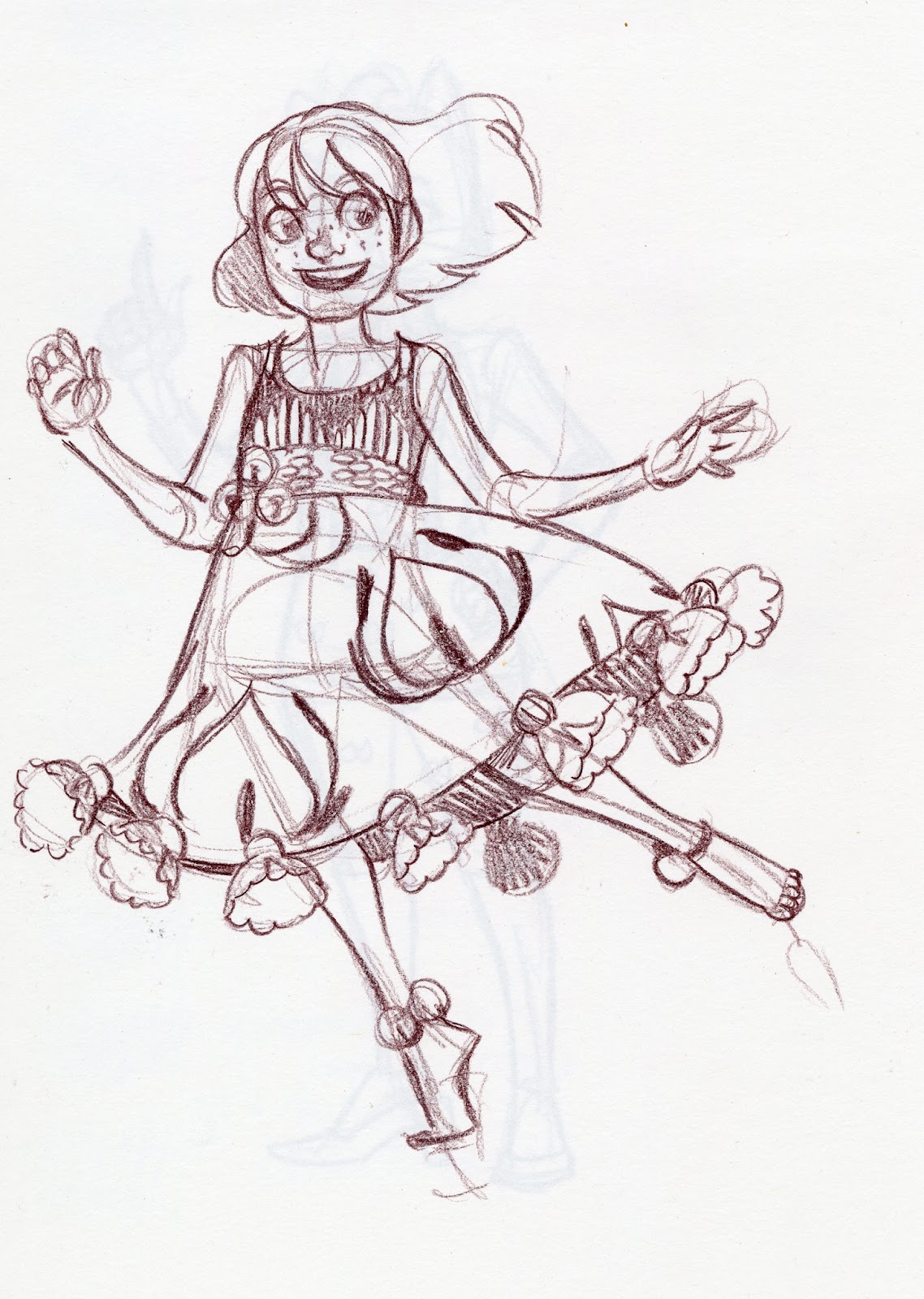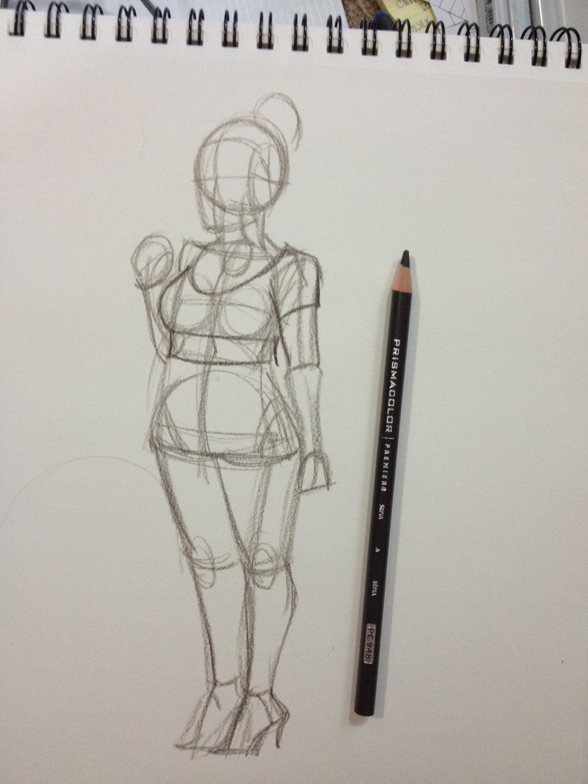 As well as the arms and legs. Right now, the arms and legs are just gestural sketch of the bones, to help me solidify the pose before I start adding too many details. Basically, the sketch at this point is my roadmap.