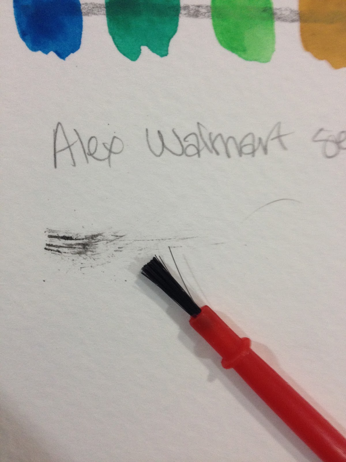 But for the sake of thoroughness, I went ahead and tried to use this brush. The plastic bristles hold zero water, which is bad news for watercolors, and they also hold very little paint, which pretty much makes this brush useless.