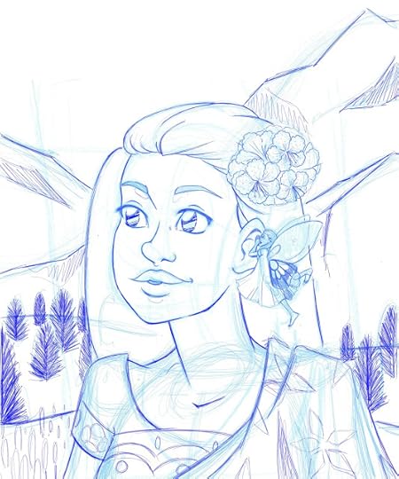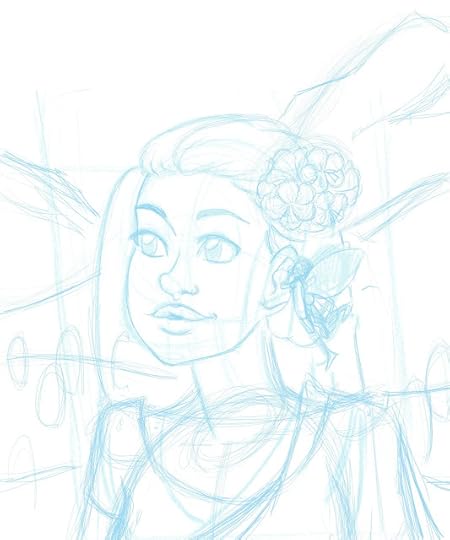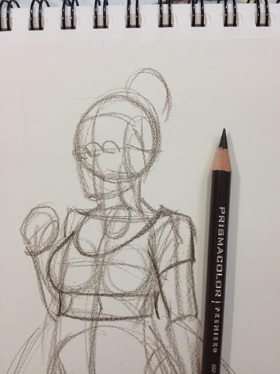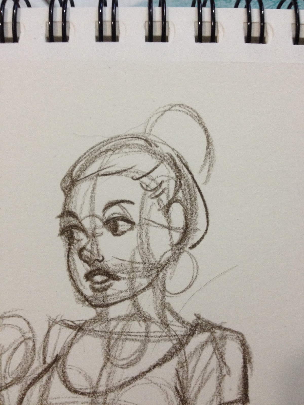 The only time I used traditional media was during the thumbnail, which was a tiny 2"x3" doodle I drew in my sketchbook with black color pencil. I took a photo of that using my Surface Pro 3, and opened it in Sketchbook Pro.
