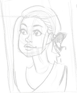 If I have a sketch I like and want to refine, I usually scan it, turn it to bluelines in Photoshop, and print it out on the appropriate paper. For the most part, I work in watercolor these days, so I'm usually printing it out on watercolor paper, and penciling it.