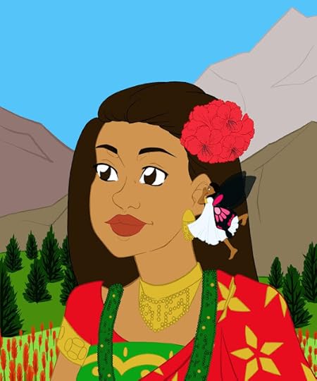 Hope whispers dreams of happier tomorrows while today is still distraught. My piece has a young Nepali woman heeding Hope's wisdom and turning her vision forward, away from the disastrous past. For anyone who has suffered, it is better to focus on positive change , rather than linger on prior pain.