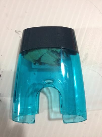 The pickings were pretty slim at my Walmart for hand operated pencil sharpeners. I didn't want something mechanical, as those tend to chew up pencils rather than sharpen them, so I grabbed the cheaper of the two hand sharpeners they had in stock. I had some doubts about it's potential performance, but for under a dollar, I figured it wasn't too big a loss.