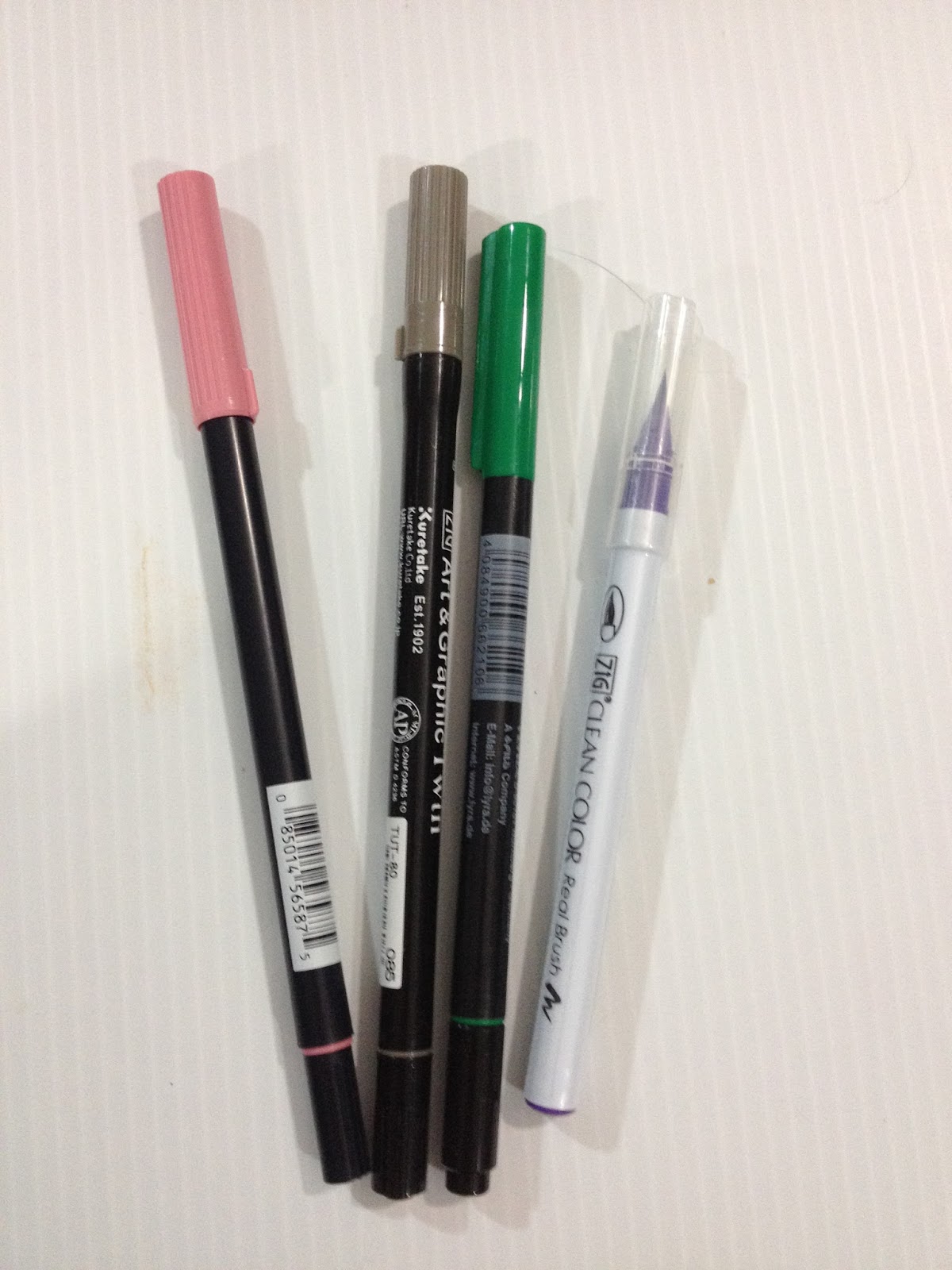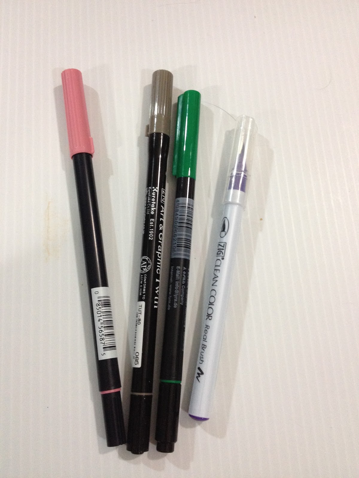 From Left to Right: Tombow ABT, Zig Art and Graphic Twin, Lyra Aqua Brush duo, Zig Clean Color