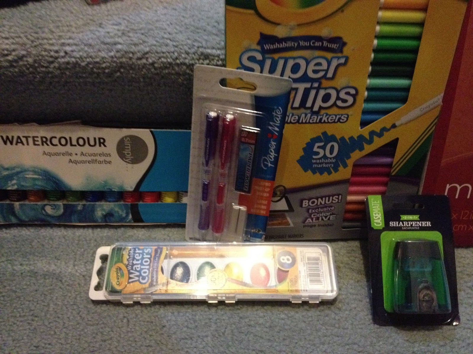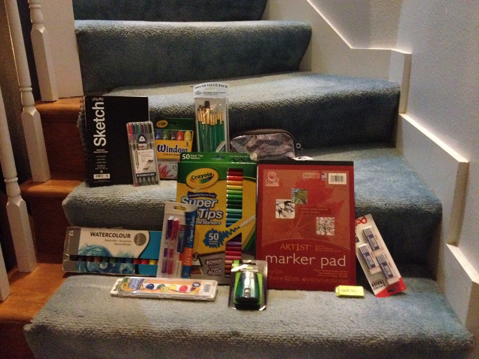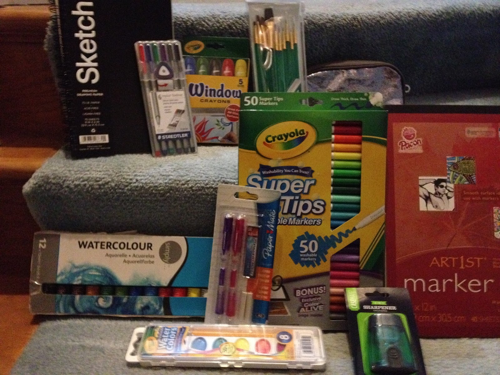 A caveat: Your Walmart will differ from mine in what it carries. You may have a Walmart with a much larger selection of art and craft supplies than my Walmart carries, or it may have a much smaller section. For this post, I scoured the back-to-school section, the kids' art supply section, and the crafts section for supplies I hope will pass muster. There are a couple exceptions: I purchased Crayola watercolors and Crayola markers.