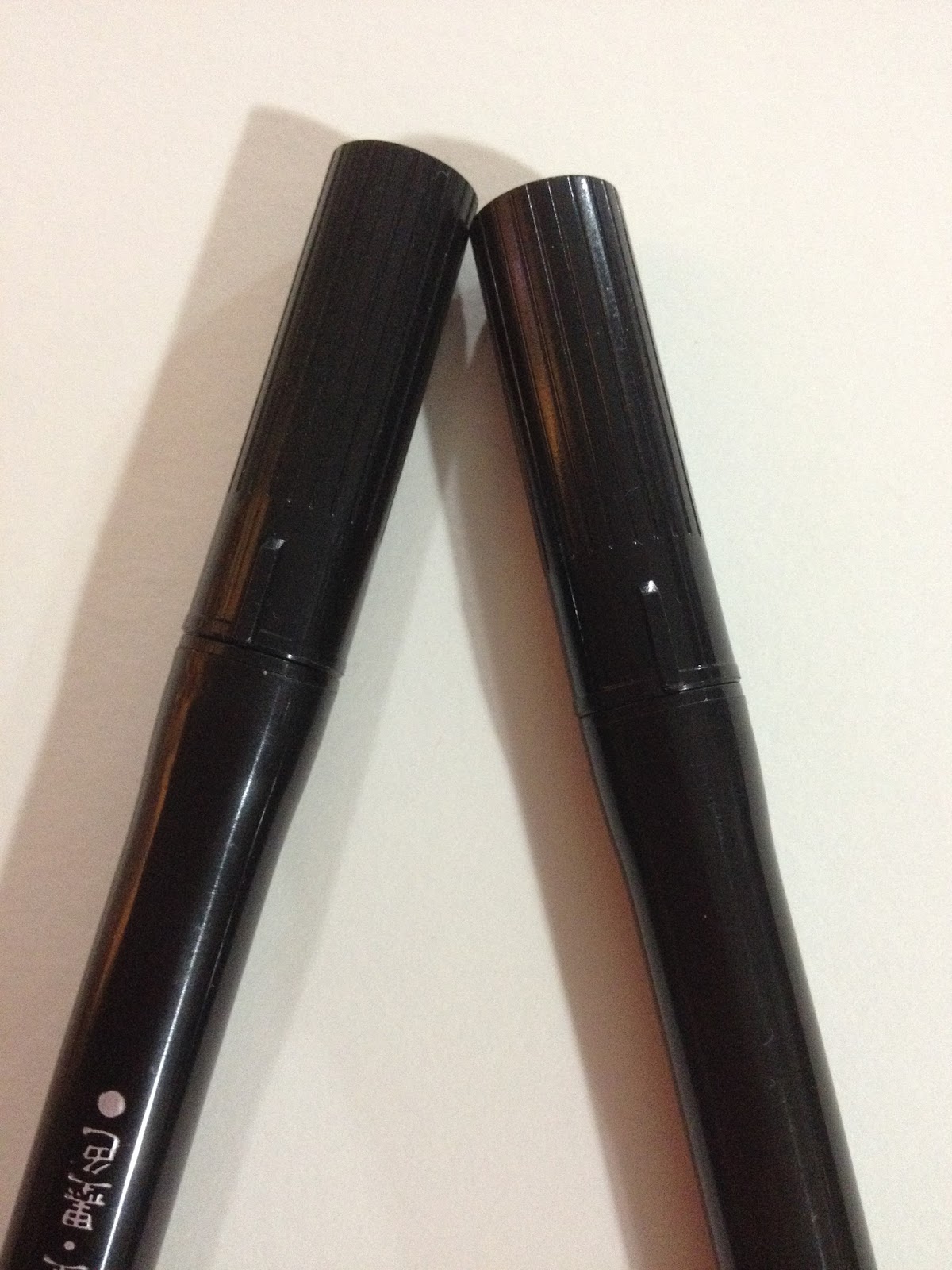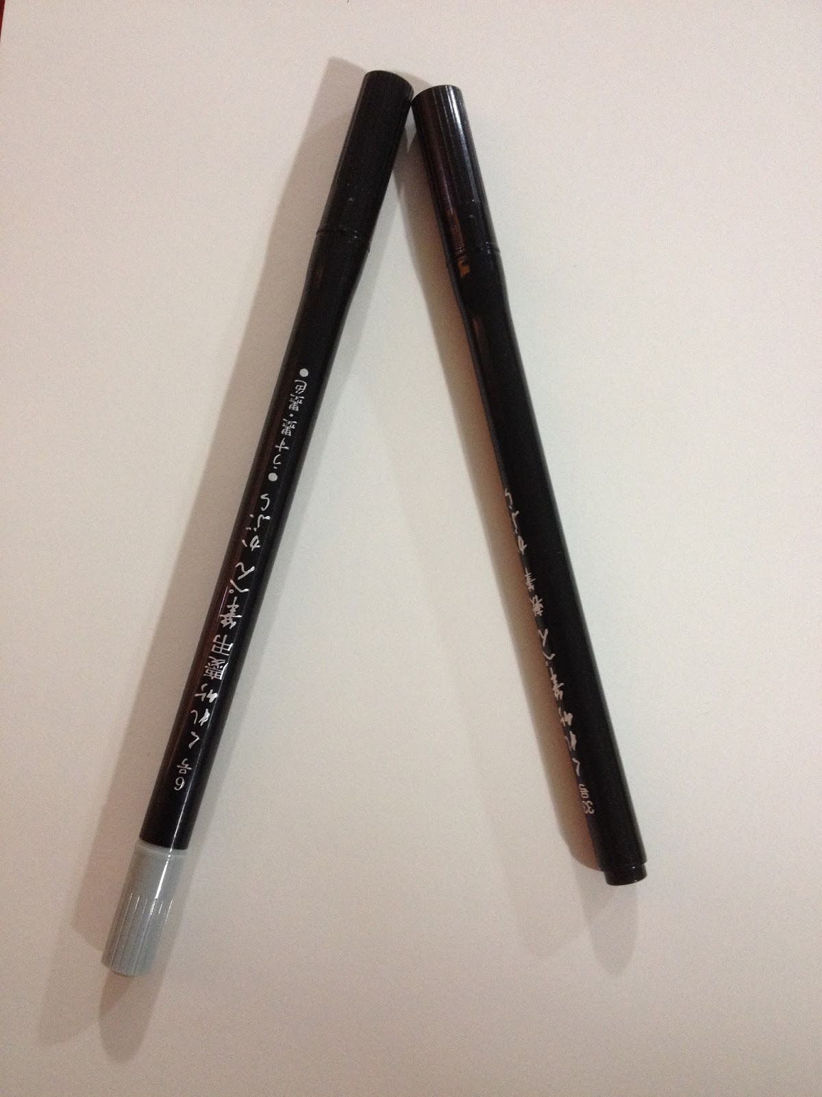 Comparison of two Kuretake products that use the same pen mould- the Kuretake No. 6 is to the left, Zig's Art and Graphic Twin to the right.