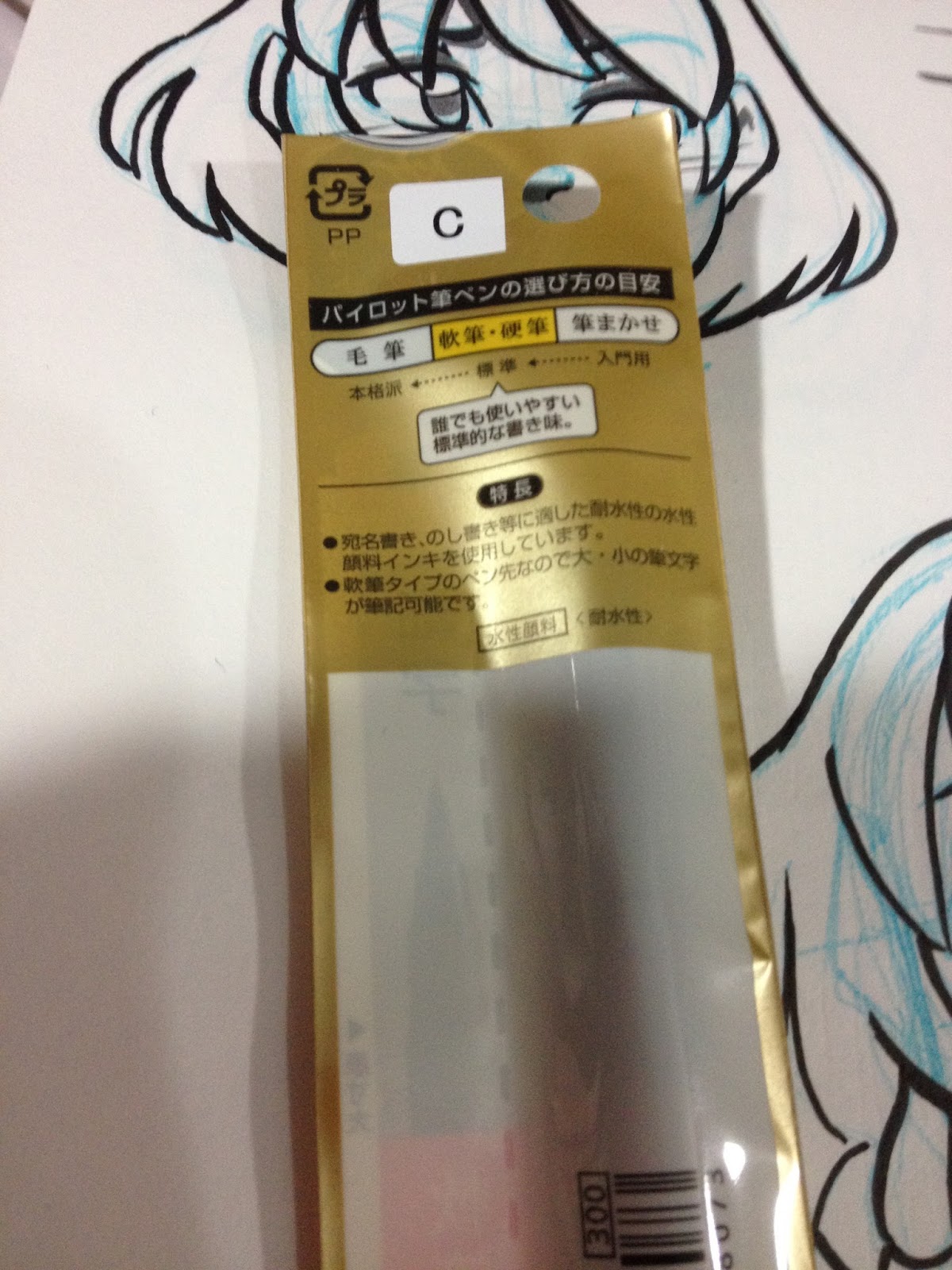 The Pilot Brush Pen- Small Soft Tip- Fine comes in a minimalist plastic envelope, which is hugely refreshing after an endless sea of plastic and cardboard blister packs from my Walmart Art Supply Review Series. It's easy to open, and full of information I can't read.