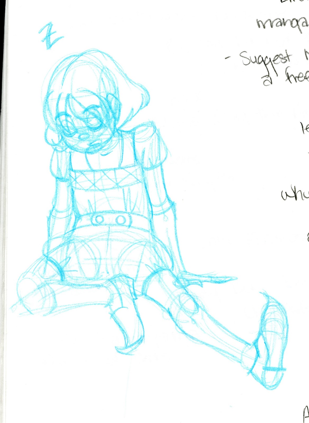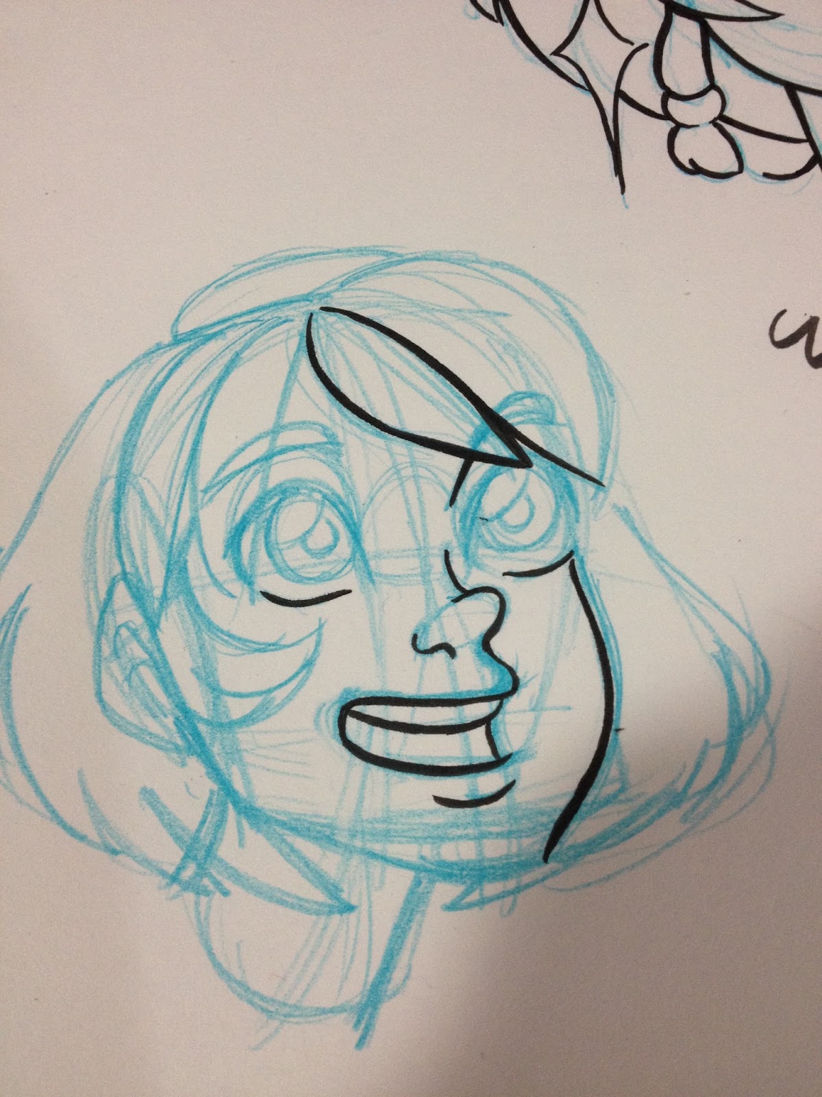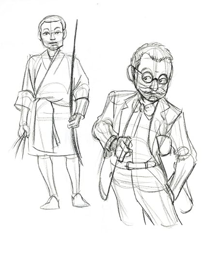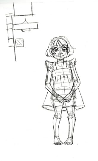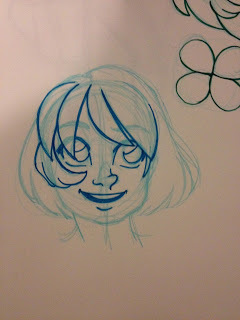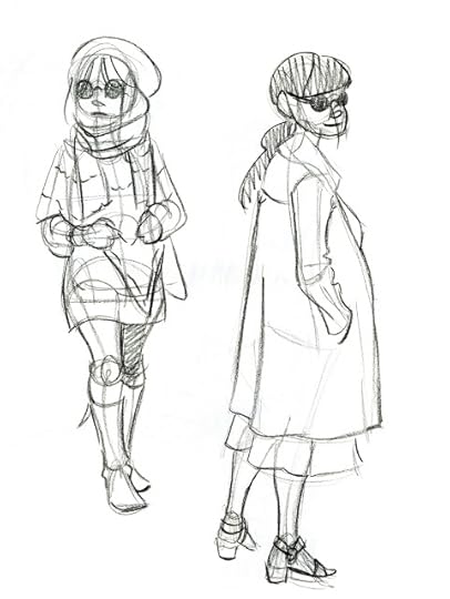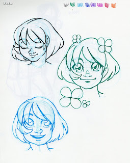 For those of you who've noticed that I often sketch with color pencils, and may be wondering why I do so, the reason is because it allows me to loosen up, without having to wait for ink to dry. Sketching with permanent or semi permanent materials like ink, china marker, or color pencil is a great way to work on being more decisive, as it removes the ability to erase repeatedly. I do not recommend this for production work, but I've found it's a great way to create more gestural, less fussy sketches, and it removes the mental burden of trying to make things perfect.