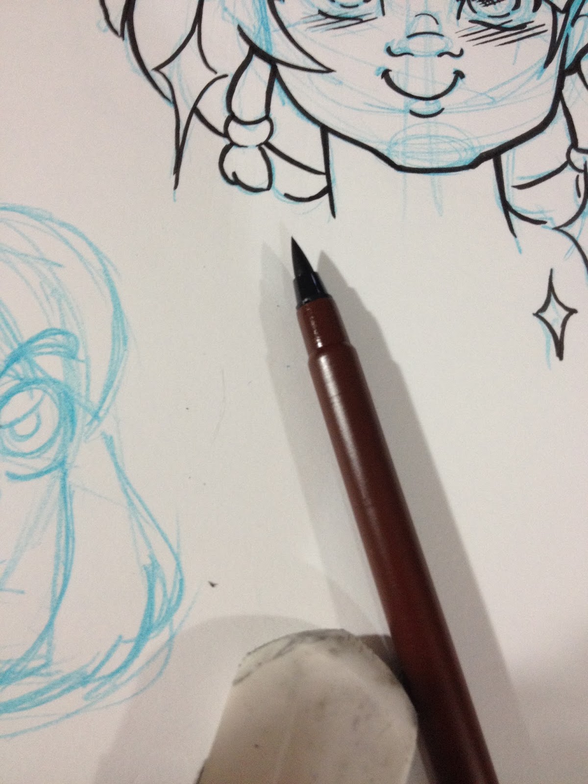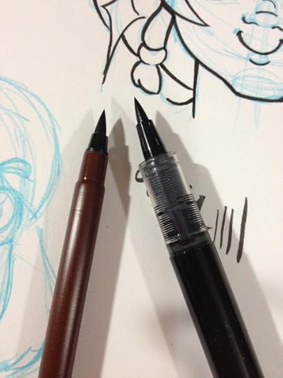 It's really hard to pull clean, straight lines with these pens, for some reason. I'm not sure if it's because I'm trying to ink with them the way I would with fude pens, rather than the loose, hatchy style I usually use for tech pens, or if its the pens themselves.