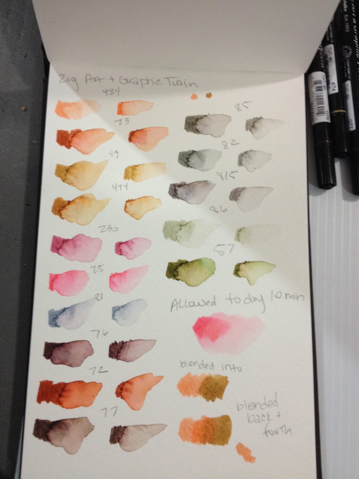 I've reviewed a lot of Kuretake products in the past year, and I've liked many of them. My go to inking pen is a Kuretake Fudegokochi, and I've gone through dozens over the four years I've used them. I wasn't so impressed by the Tombow ABT watercolor brushpens I tested not long ago, and given how similar the Zig Art and Graphic Twin watercolor markers are in outward appearance, I was nervous that this would be another disappointment.