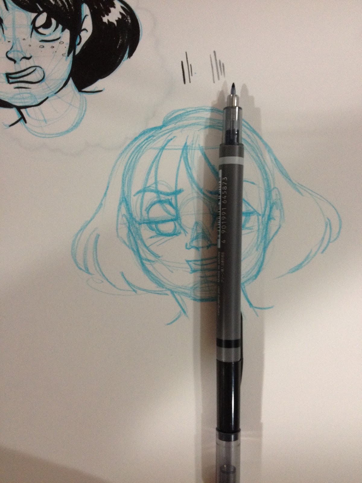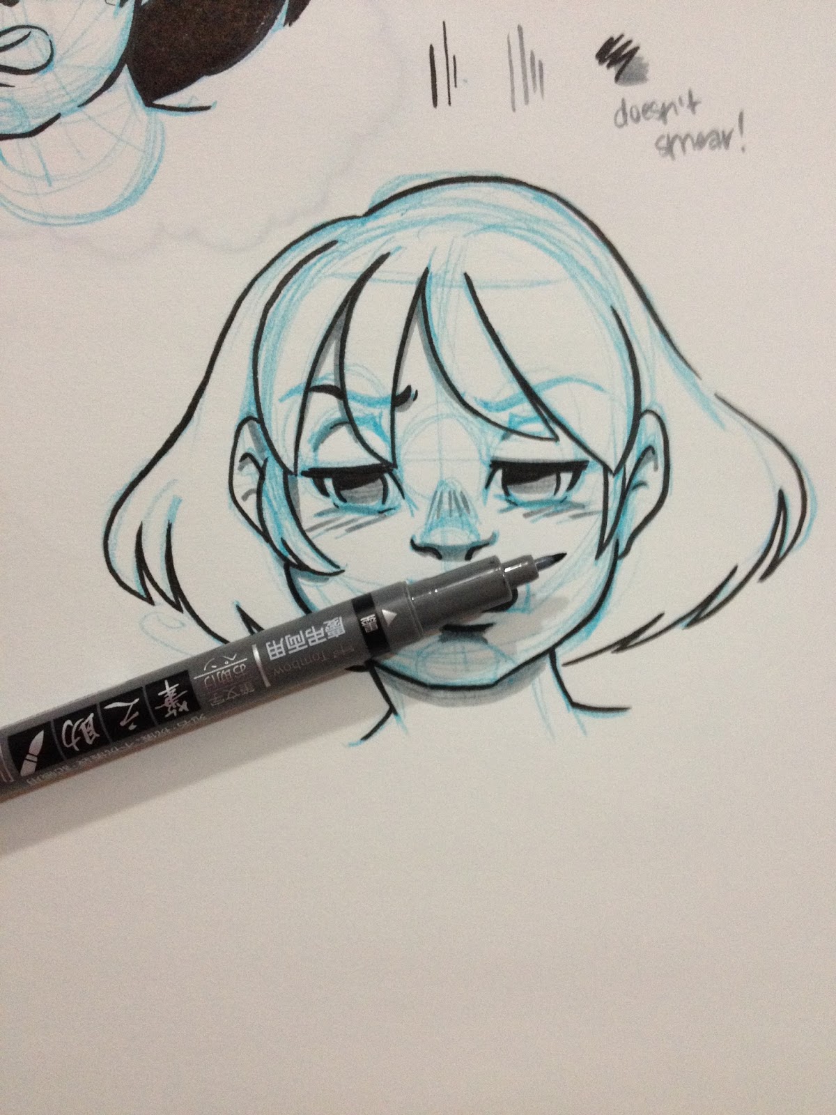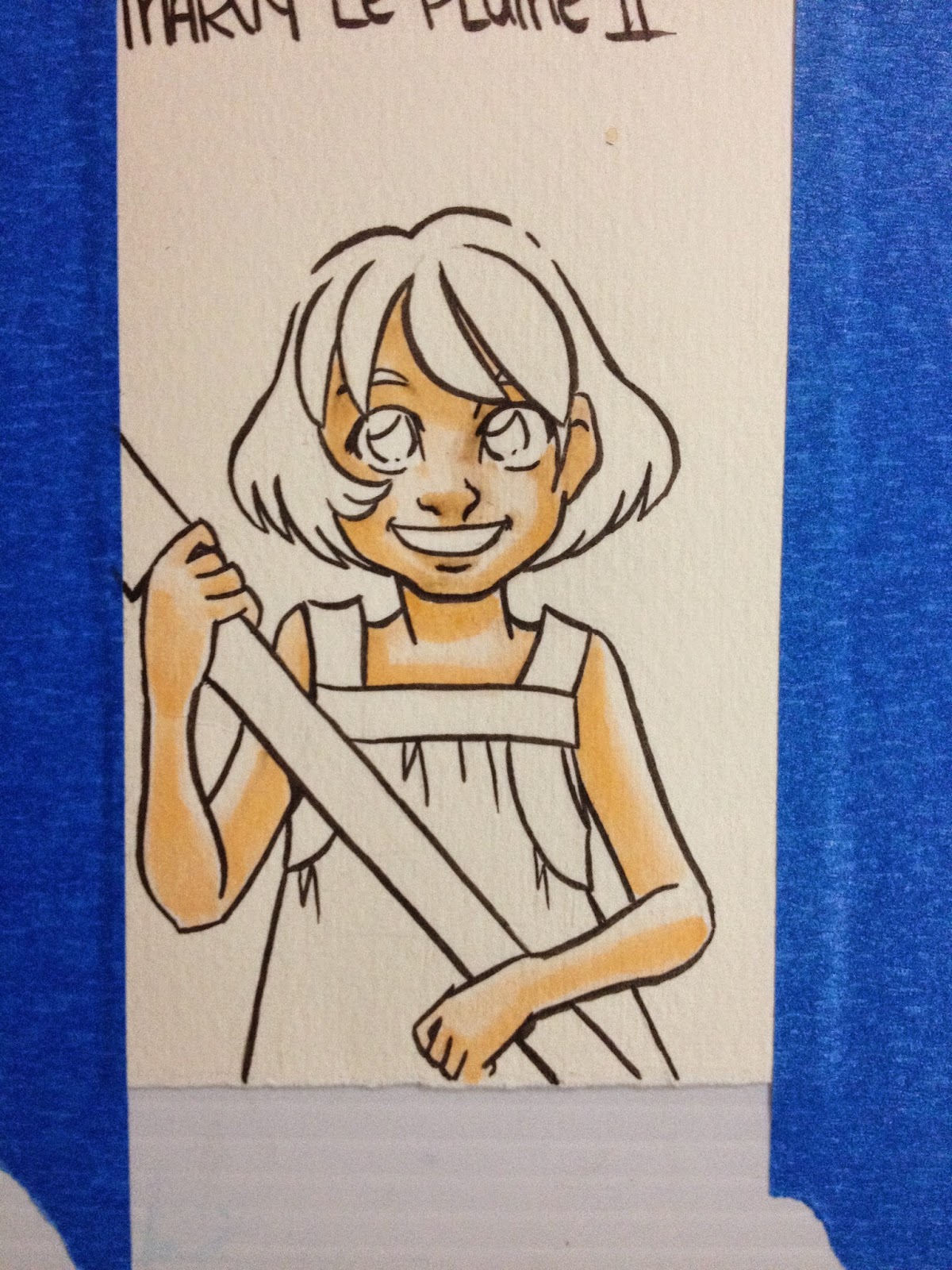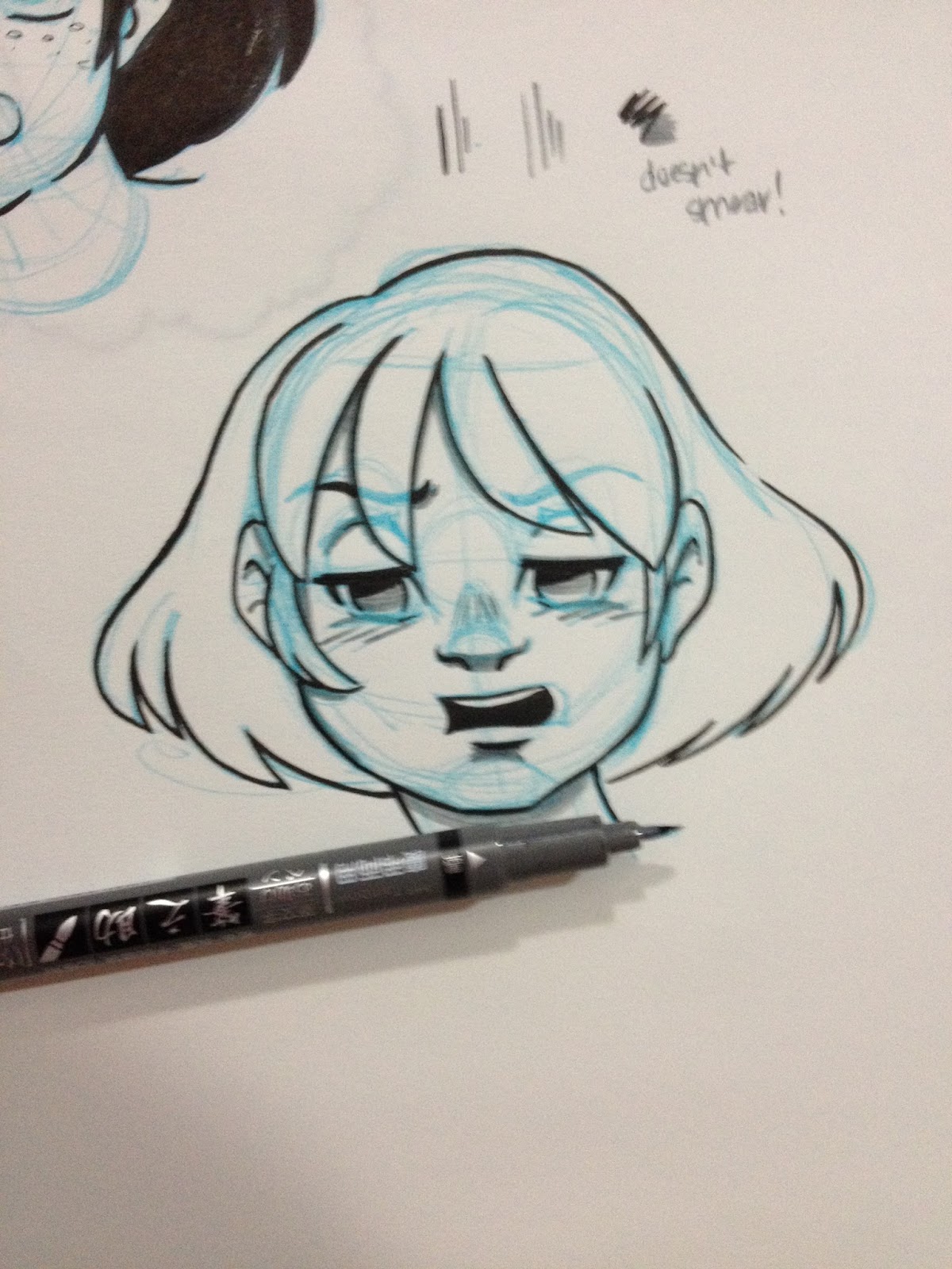 While still recovering from vicious Animazement con crud, I whipped out this sketch and inked it with the waterproof Sailor Mitsuo Aida double sided pen. I let the ink dry overnight.