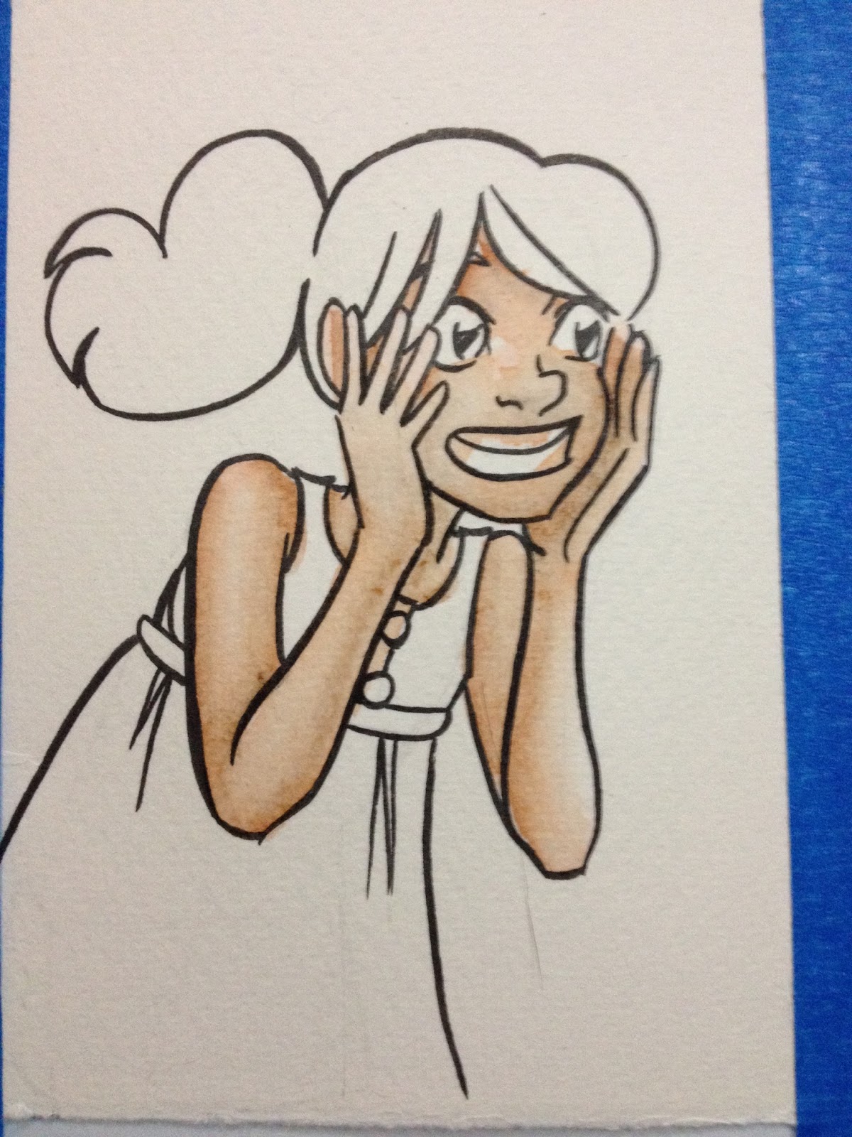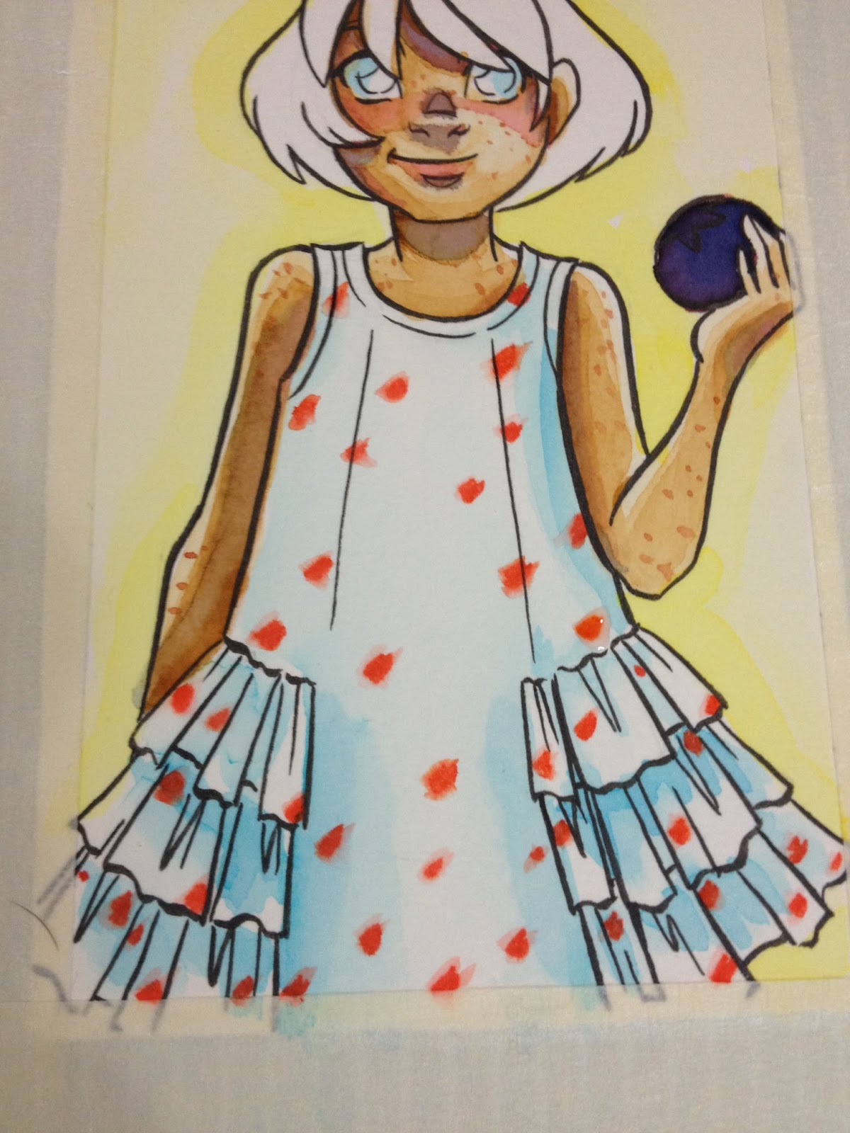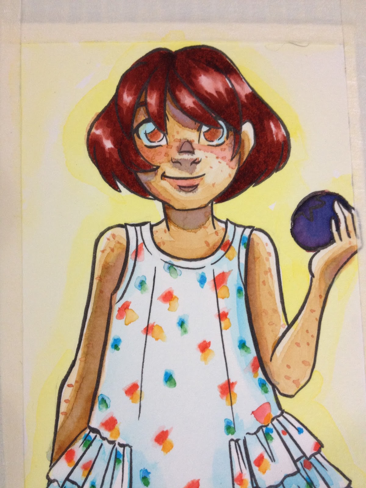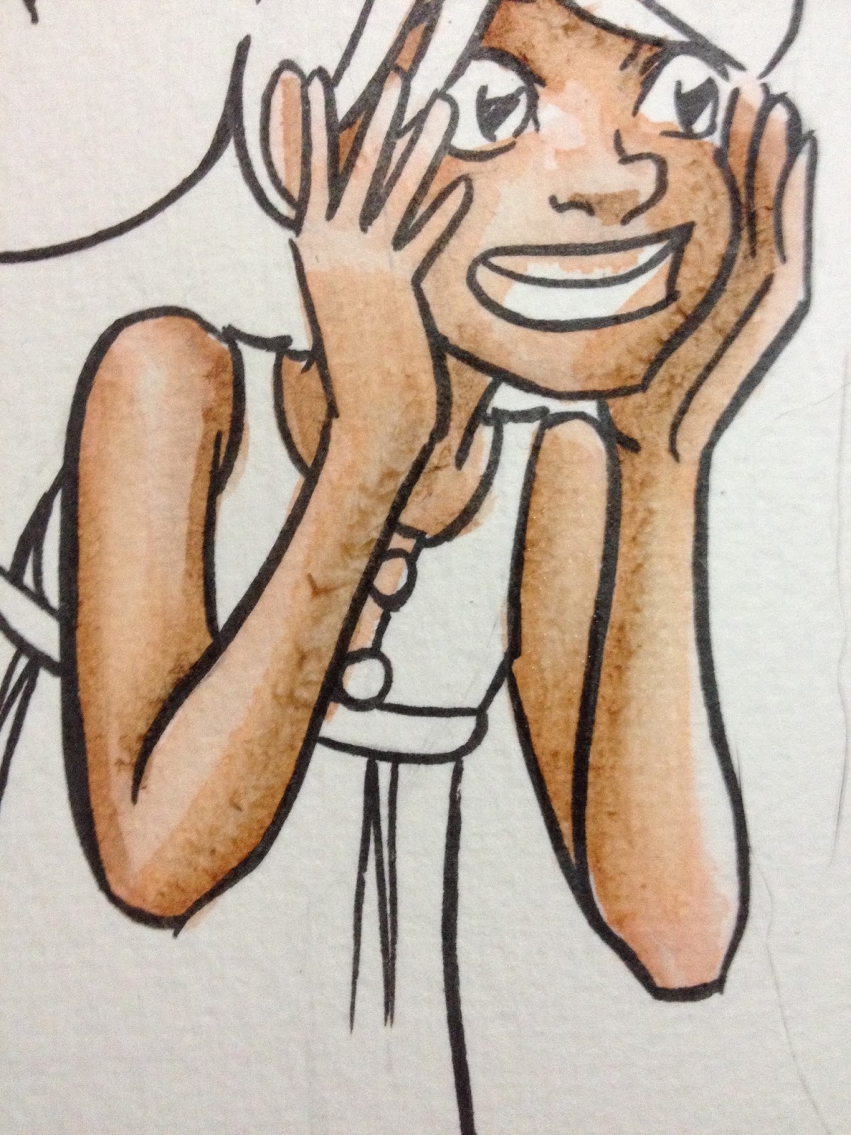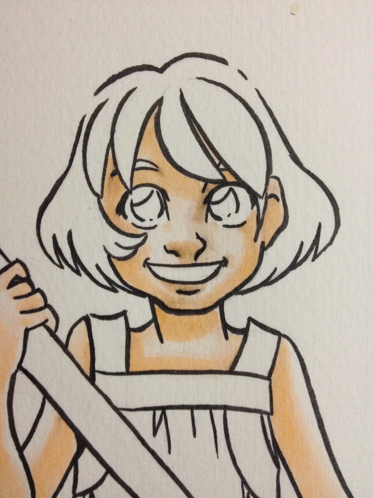 While still recovering from vicious Animazement con crud, I whipped out this sketch and inked it with the waterproof Sailor Mitsuo Aida double sided pen. I let the ink dry overnight.