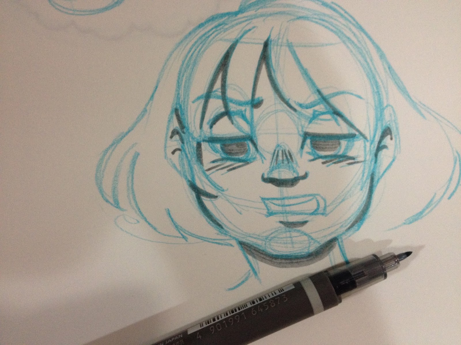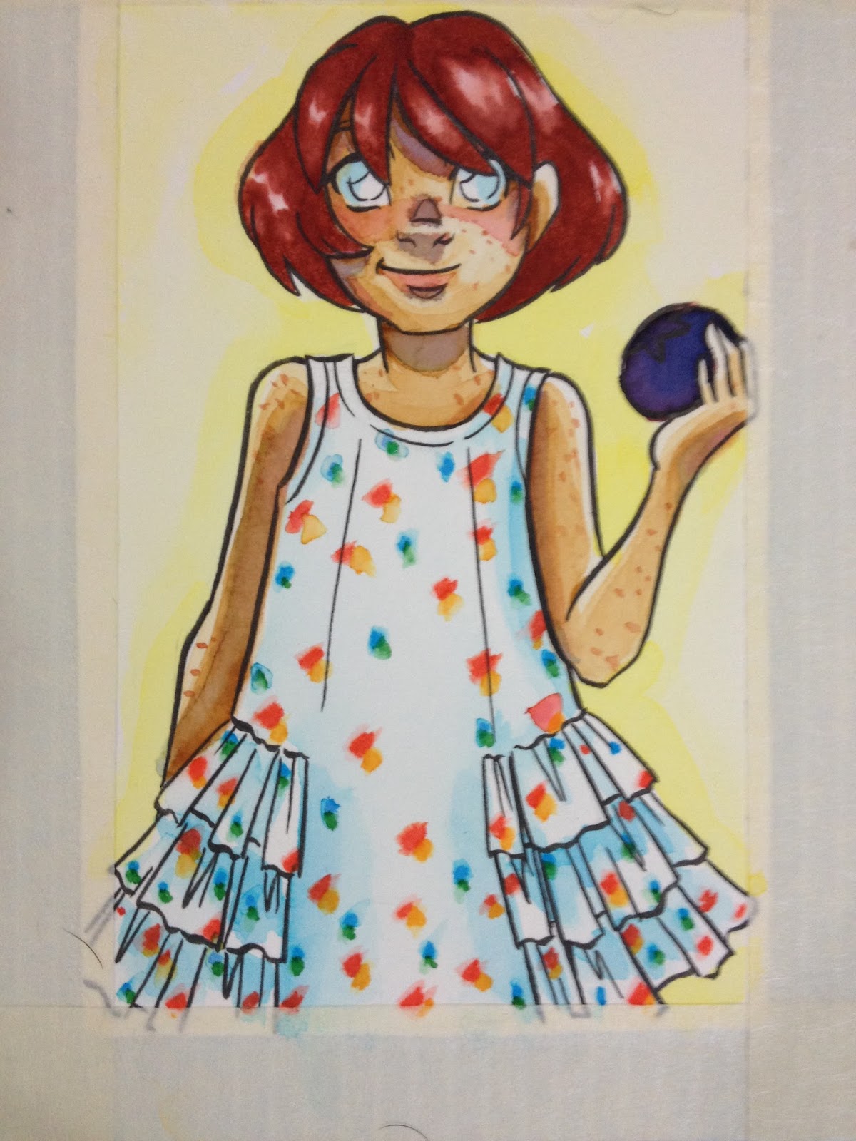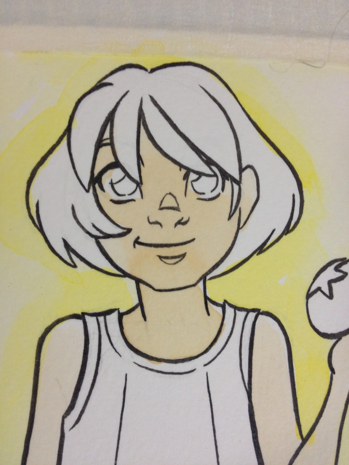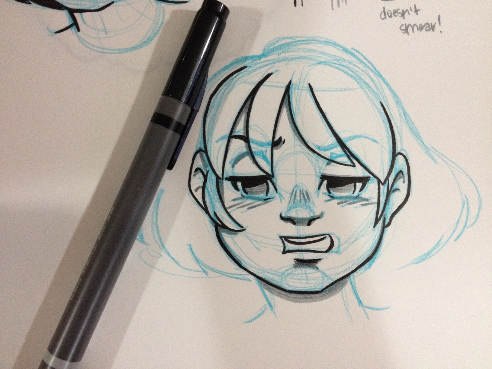 While still recovering from vicious Animazement con crud, I whipped out this sketch and inked it with the waterproof Sailor Mitsuo Aida double sided pen. I let the ink dry overnight.