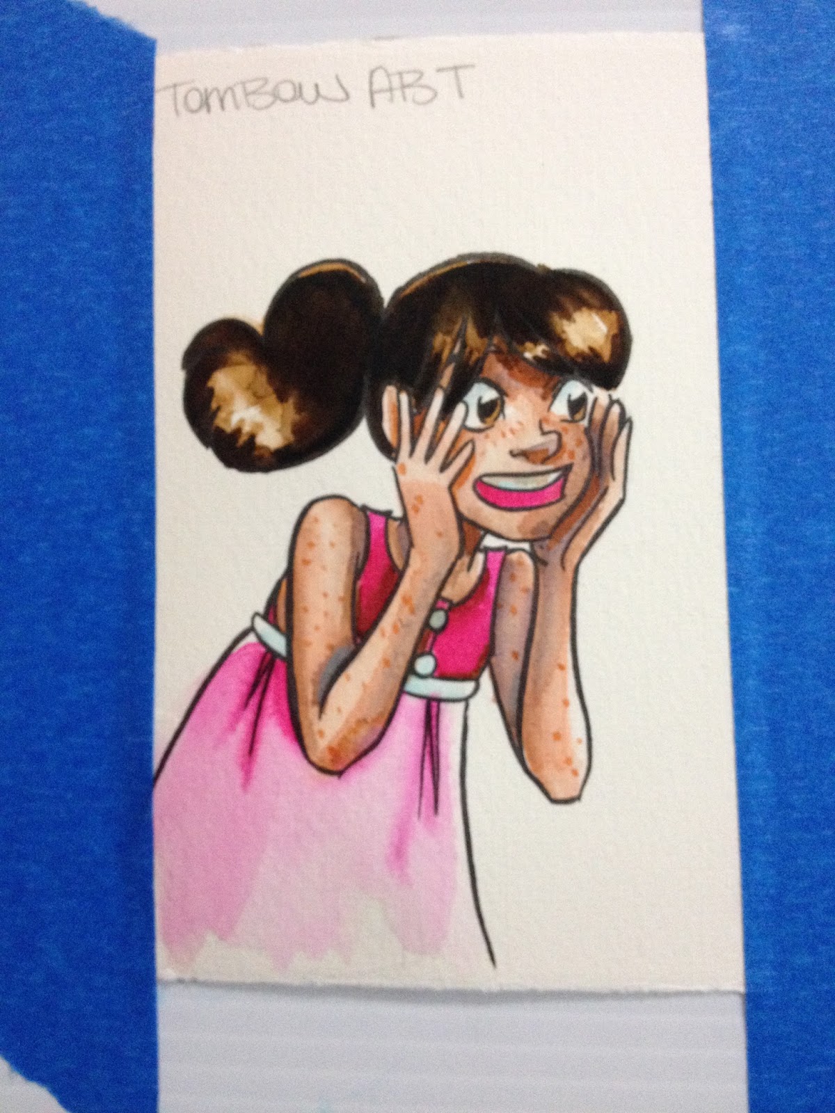 Many of the watercolor markers I review poorly started their downward descent when it came to skintones, or applying color to skintones. For what I do (watercolor comics) skintones and shading are a big part of what makes something work or not, and having difficultly getting the control and effect I want from a product can really affect my opinion of a product's quality. The longer I noodle with it trying to get what I want, the worse it looks, so these are definitely not the sort of thing you play around with until you get what you want.
