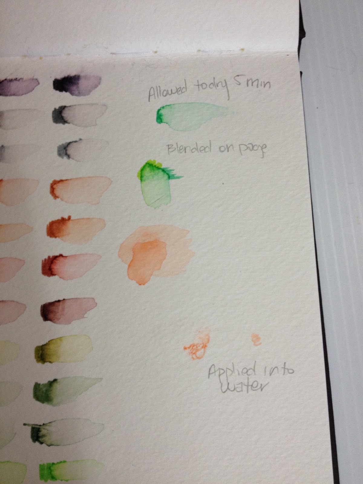 Unlike MANY of the other watercolor markers I've used (actually almost all), Docrafts Artiste watercolor markers can be blended even if allowed to dry. Regardless of drying time, initial application of pigment will still be the darkest area of pigment, so take this into account.