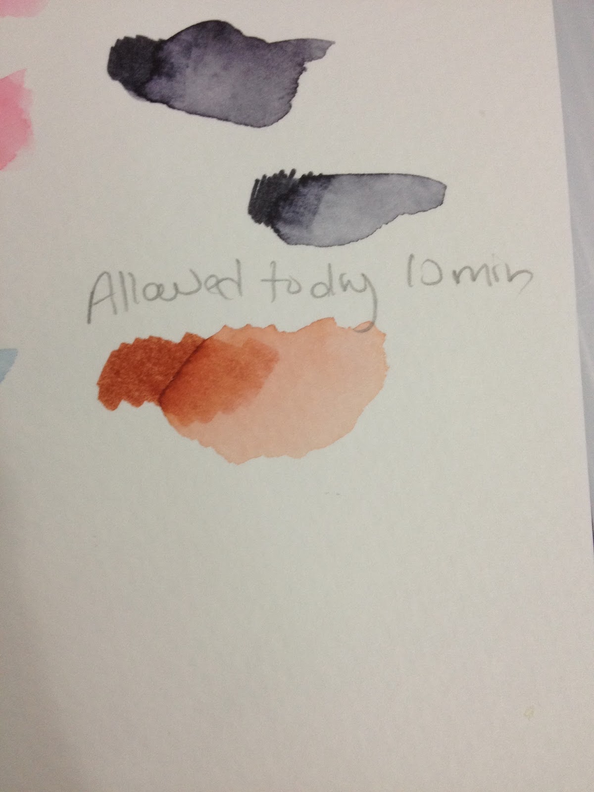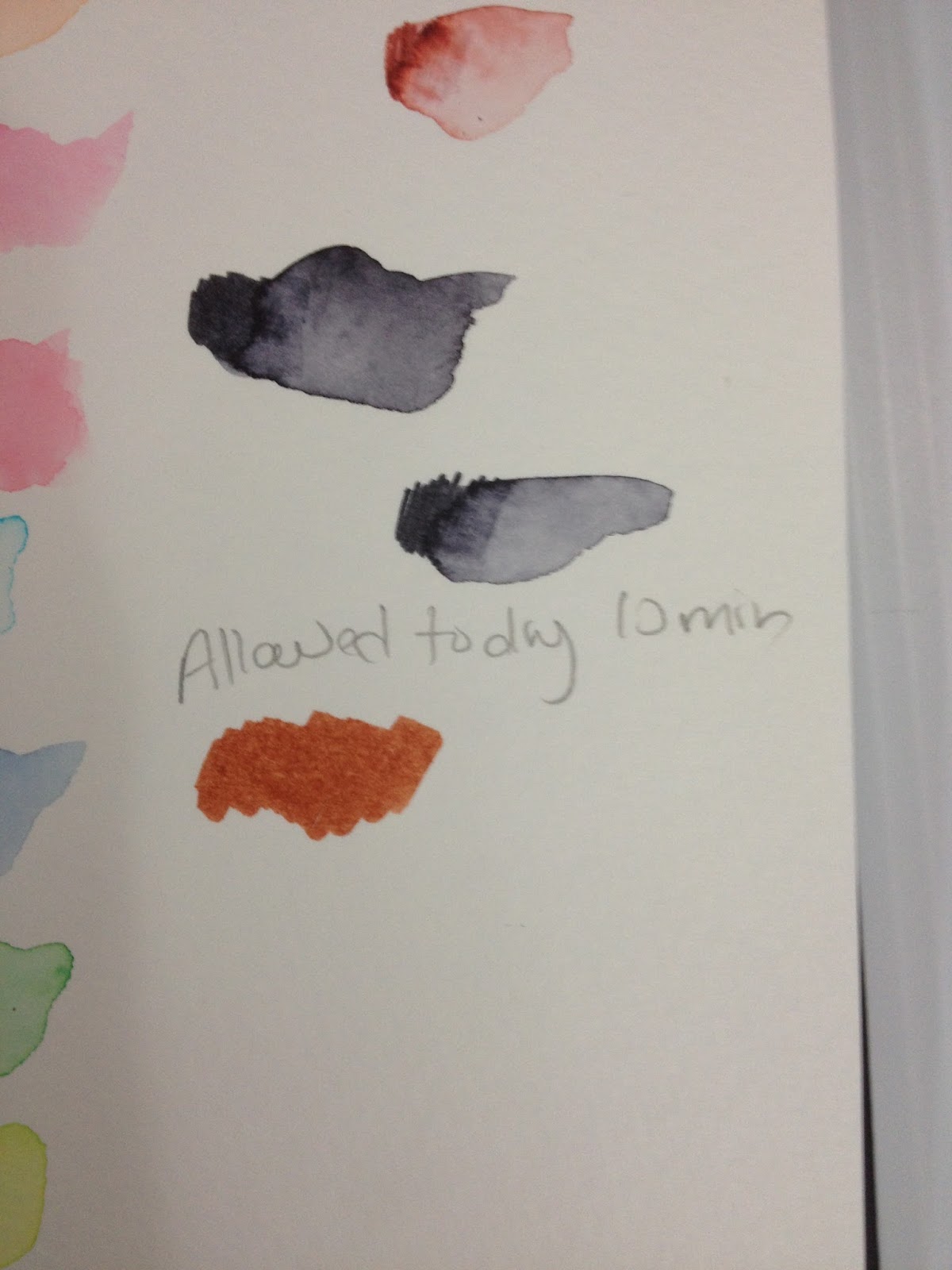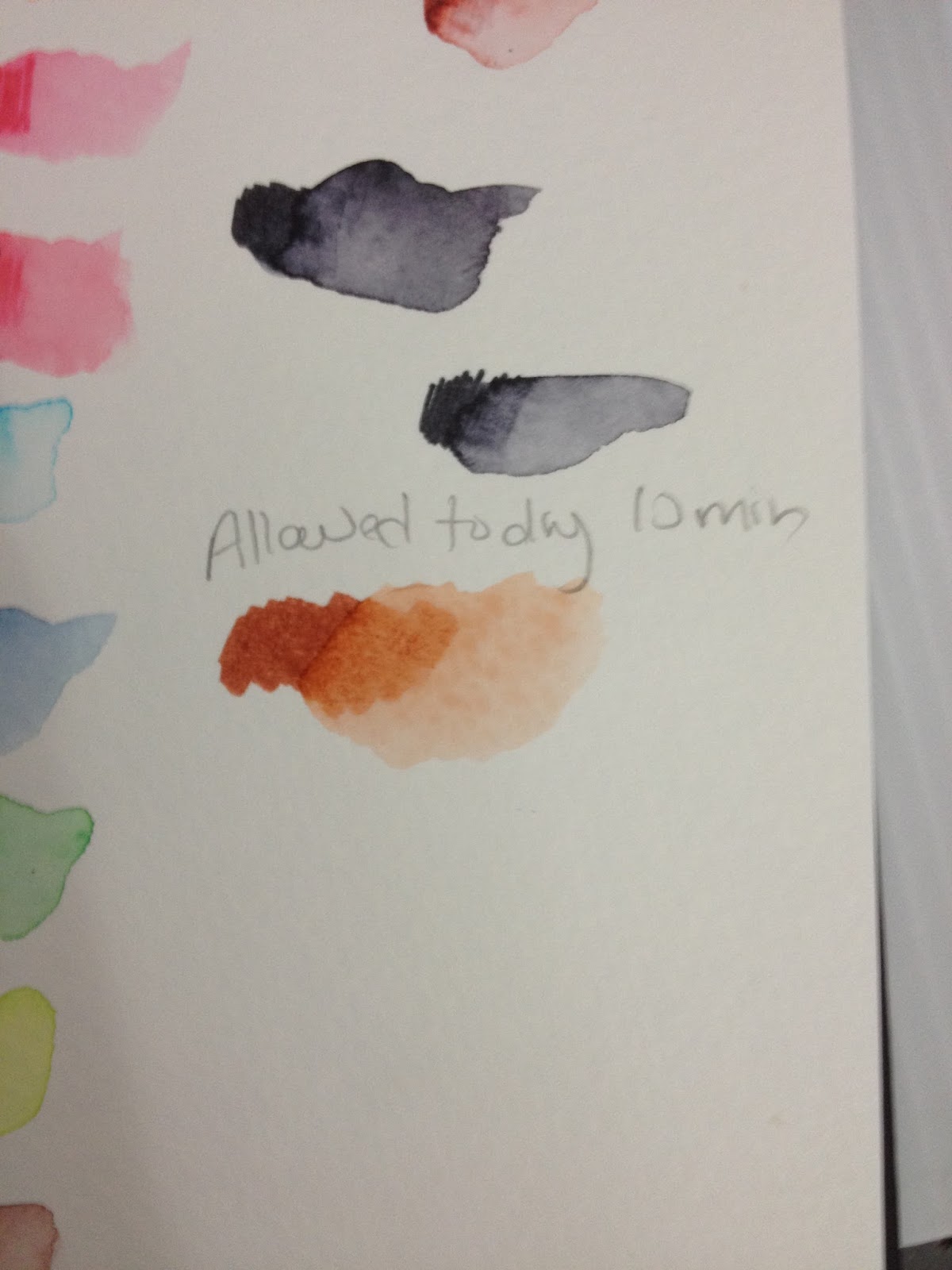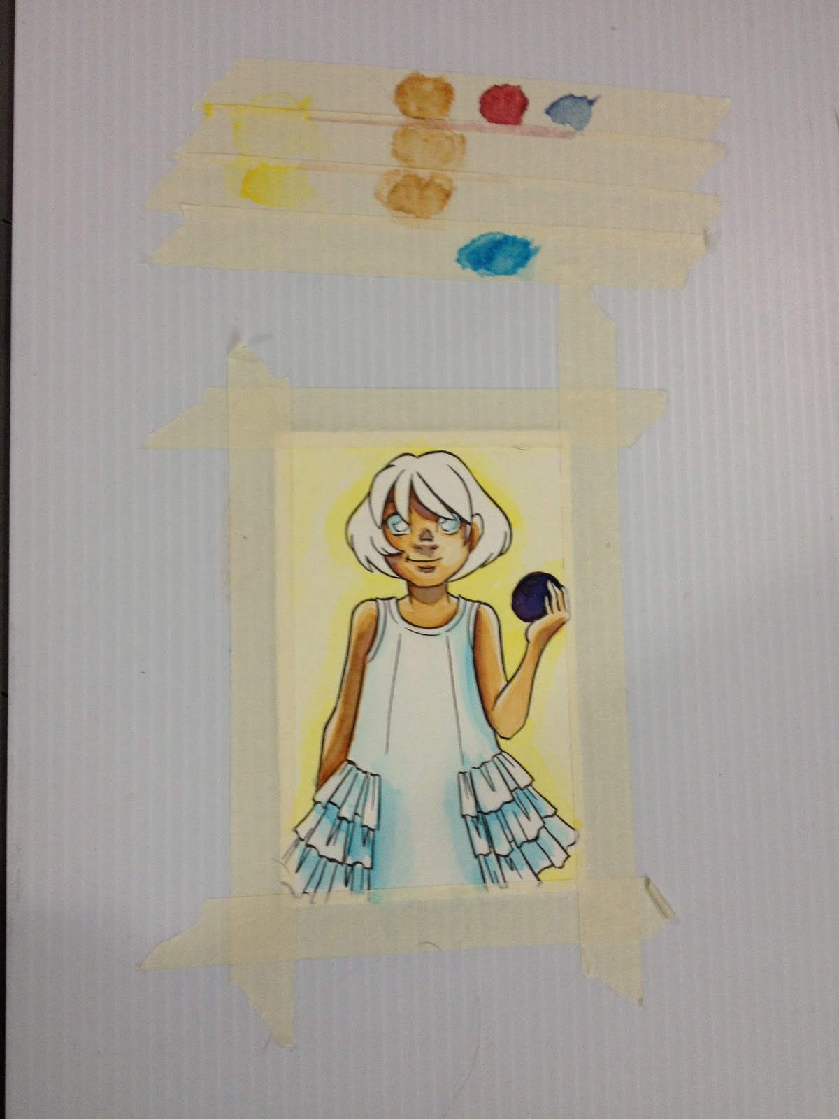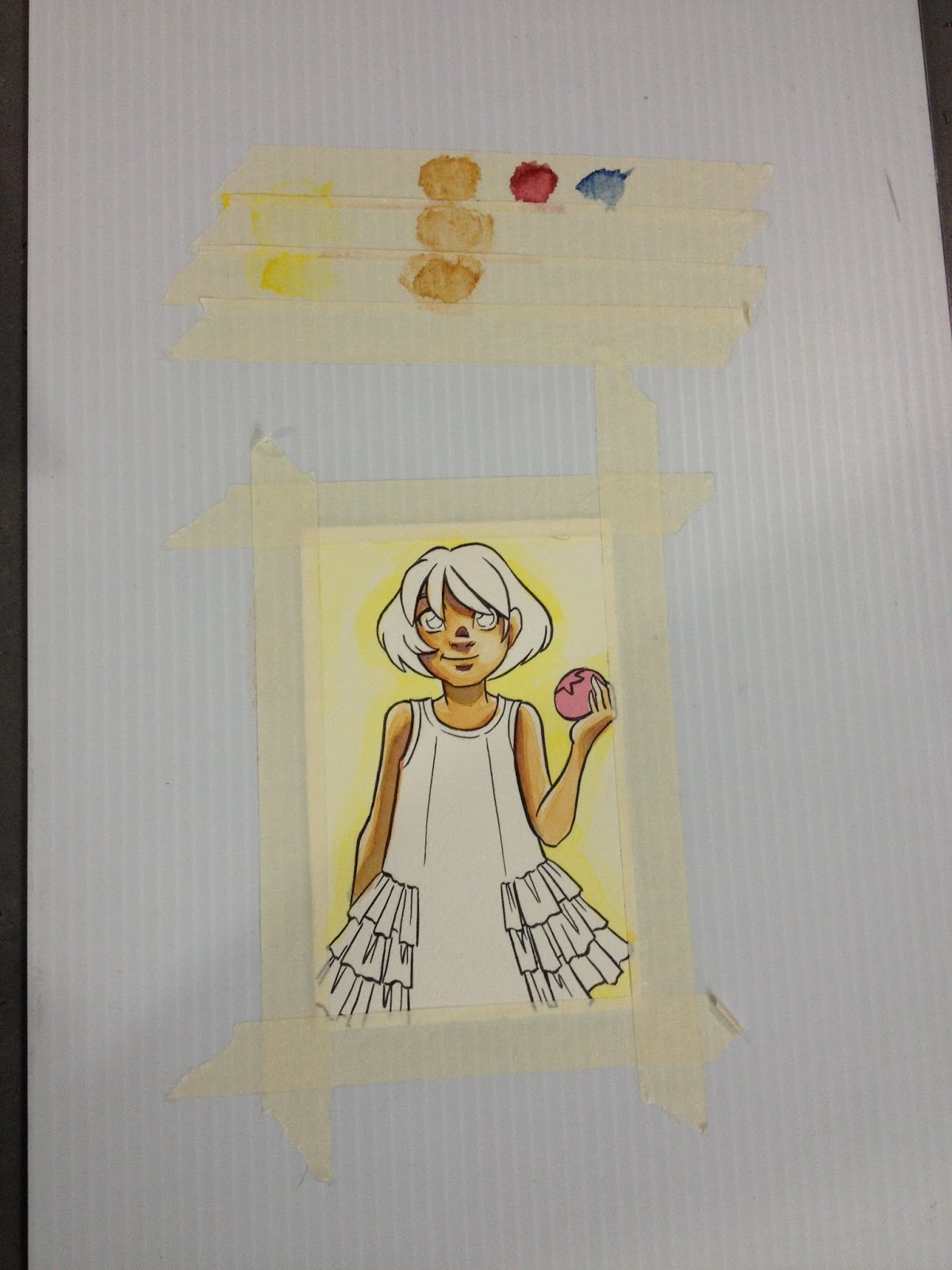 I set up a mini palette using masking tape on the side, so I had the option of applying color directly, or mixing and diluting it first.