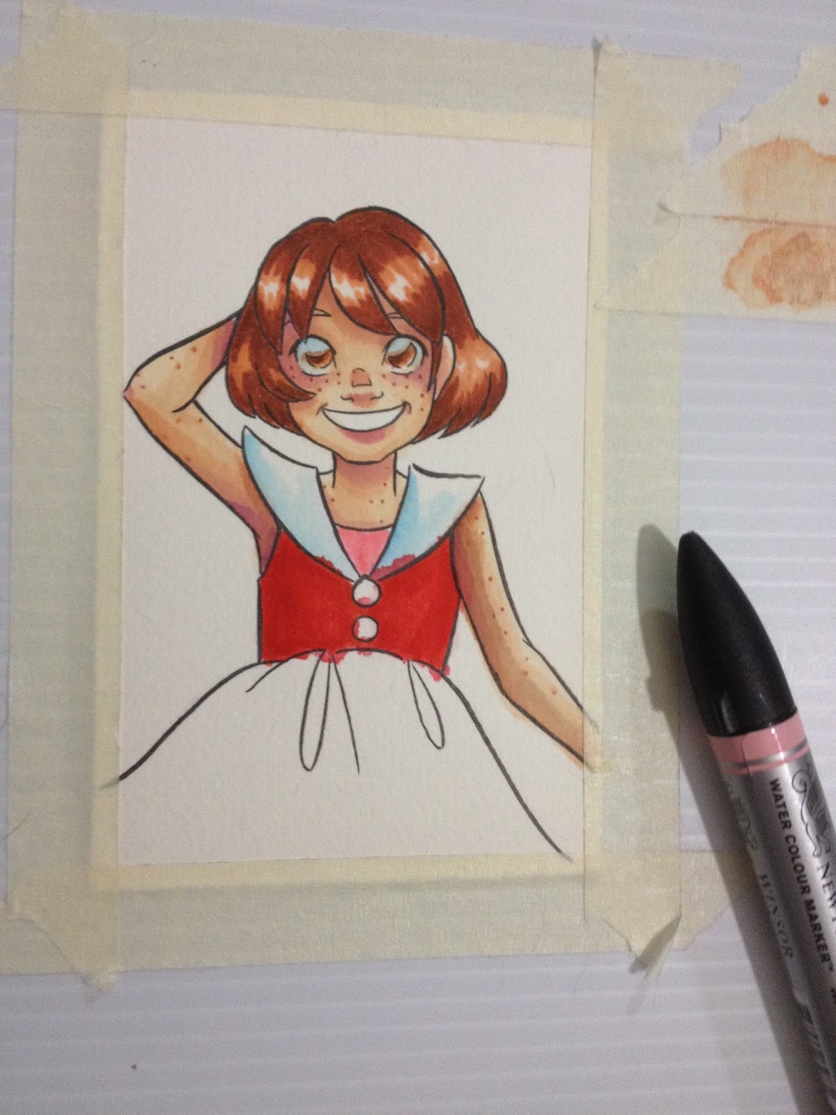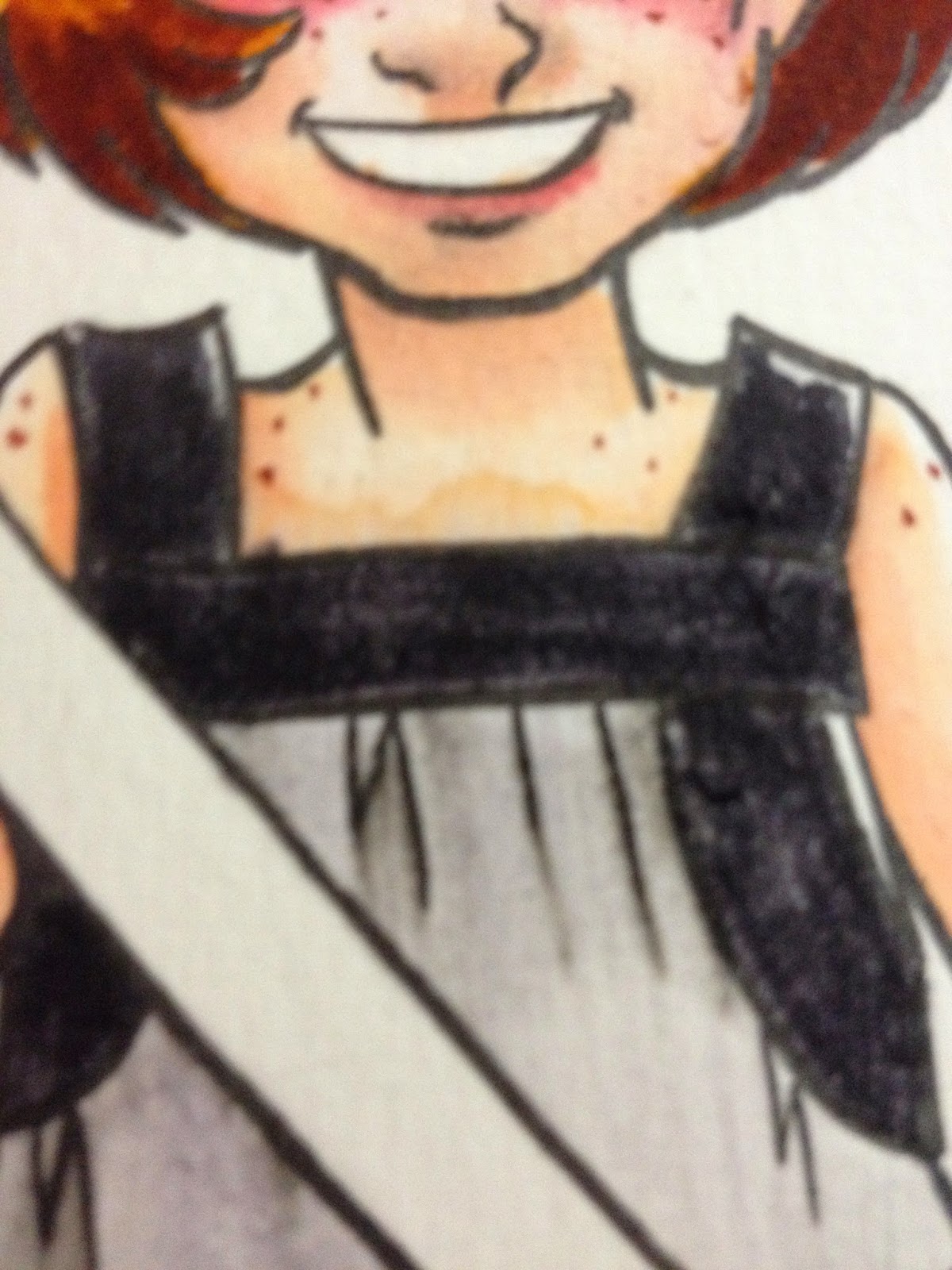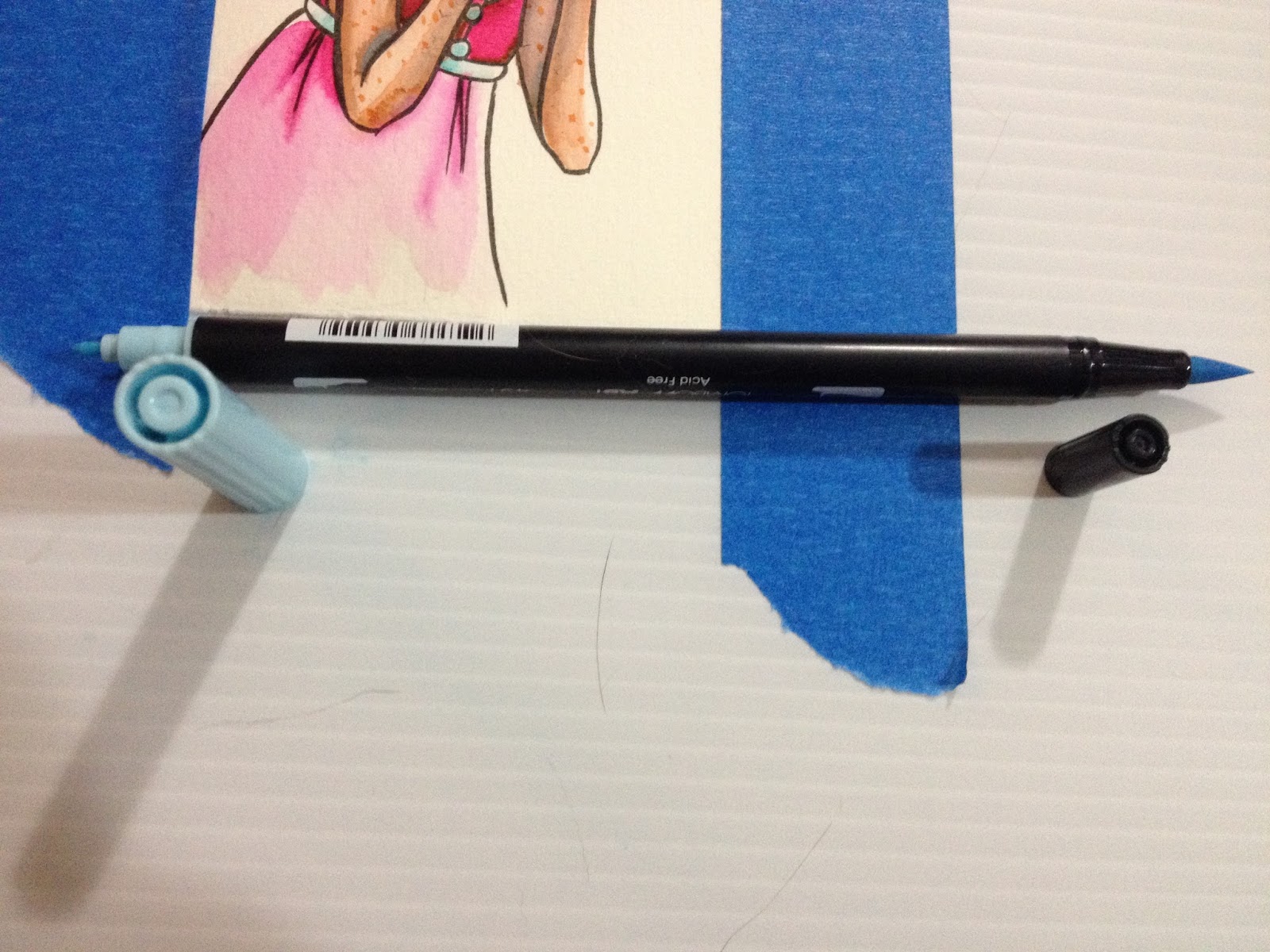 I applied the watercolor marker directly to her collar, and blended it out with water.