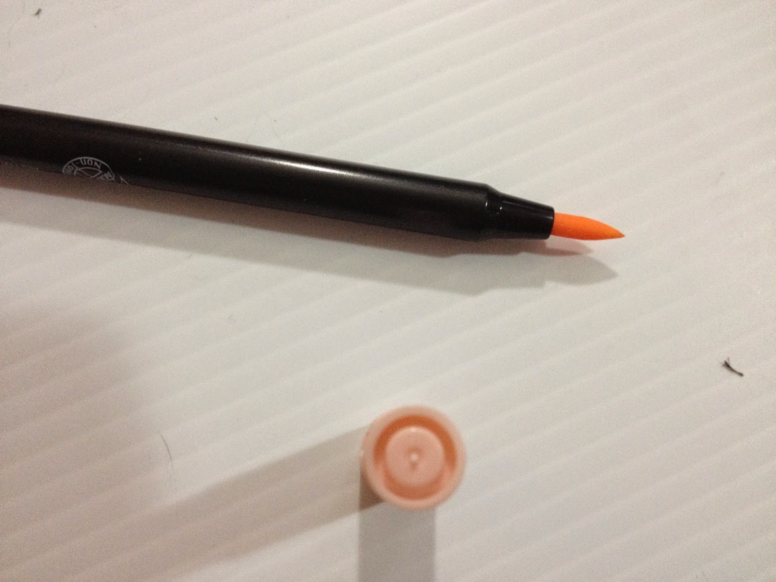 The brushnib is the weirdest brushnib I've seen yet, but that doesn't reaally mean a whole lot. The other side is your standard bullet nib- I'd really love to encounter a GOOD watercolor brushpen/marker that has a fude nib instead of a bullet nib, and a super brush for the brush nib, but this isn't that marker, so my search must continue.