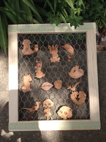 My wooden charms are cherry veneer, and are available as necklaces or keychains. Charms are $6 each, 2 for $10, or a Kara charm is free with the purchase of Volume 1 of 7" Kara.