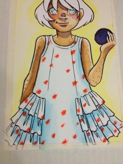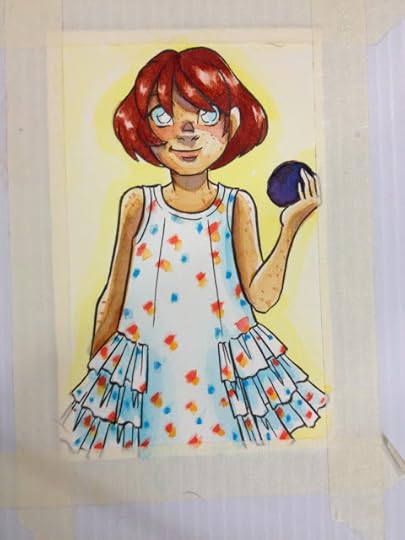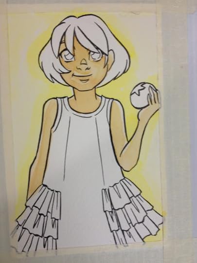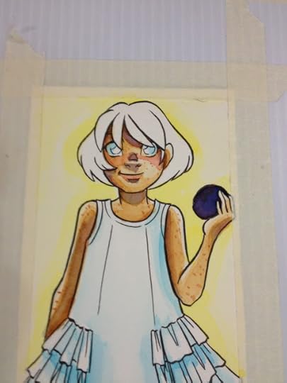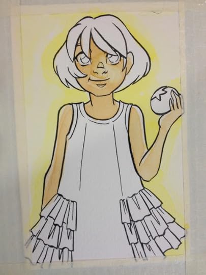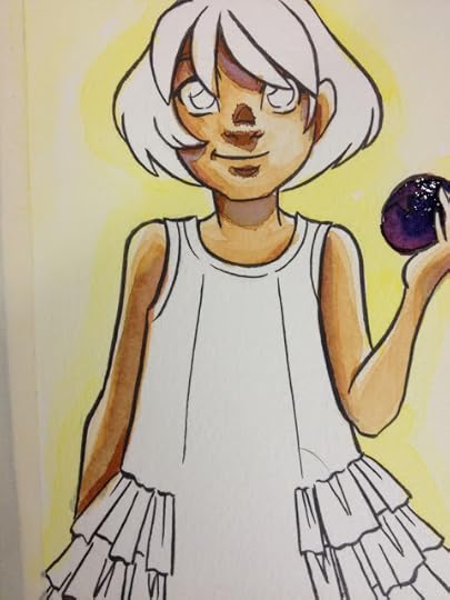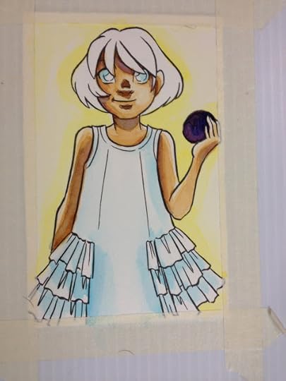 I like to paint multiple pieces at a time, and I needed a horizontal Kara hero image, so I painted this while working on a batch of Gizmo Grandma pages. Since people have asked what I use for my real illustrations, I used a couple of self assembled dried watercolor palettes that contain a variety of Holbein Irodori , Winsor and Newton (both pans and tubes), Daniel Smith, and SoHo Urban Watercolors. I purchase empty pans and my palette is a metal palette similar to the ones at the bottom of this page. A metal palette like this is a lifetime investment- you really only need to buy it once, as long as you take care of it, it'll last. My palette allows for me to put my own pans in, and I make sure they stay in place when I travel with a little bit of double sided tape on the underside of the plastic pan. I paint with a variety of watercolor brushes, both natural and synthetic, from a variety of places, although these days I like to catch brush sales at my local Jerry's Artarama, because I really like their Creative Mark Rhapsody brushes.