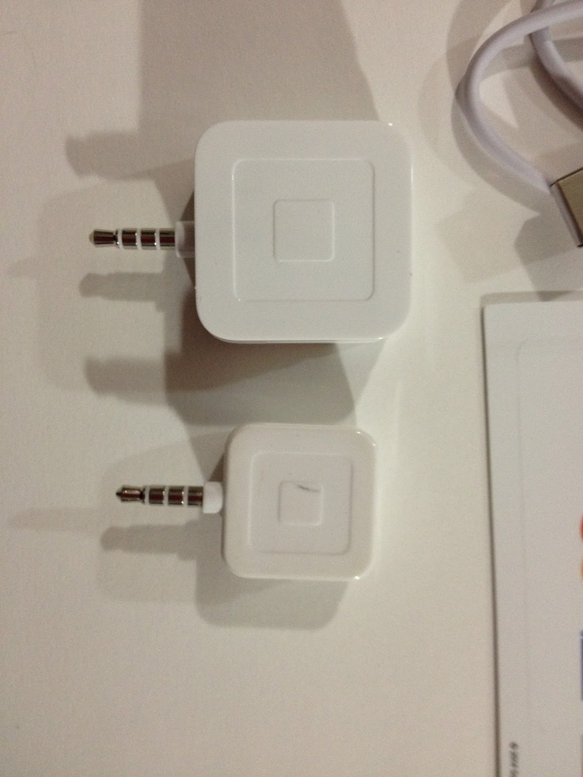 So uh, my indicator lights flat out don't work. It doesn't show when it's charging, charged, or dead. My phone seems to pick it up though, so I GUESS it's working? Why can't this device just siphon a charge off the phone the way the other reader does? When this reader is dead, can it still do mag strip reading the way the other reader can, or will I be pulling out the old reader? And although I KNEW the new reader was big when I was taking the first batch of photos, I didn't realize how huge and bulky it really was until I plugged it into my phone. The least SquareUp could have done was have the jack fold into the unit, consider how huge the unit is, or offered a lanyard or keychain loop so it could be easily carried along. Or put the charging slot on the side of the unit, so you can charge while you're using it. Or included a carrying case for the cable and the unit. It DID however come with a super short charging cable.