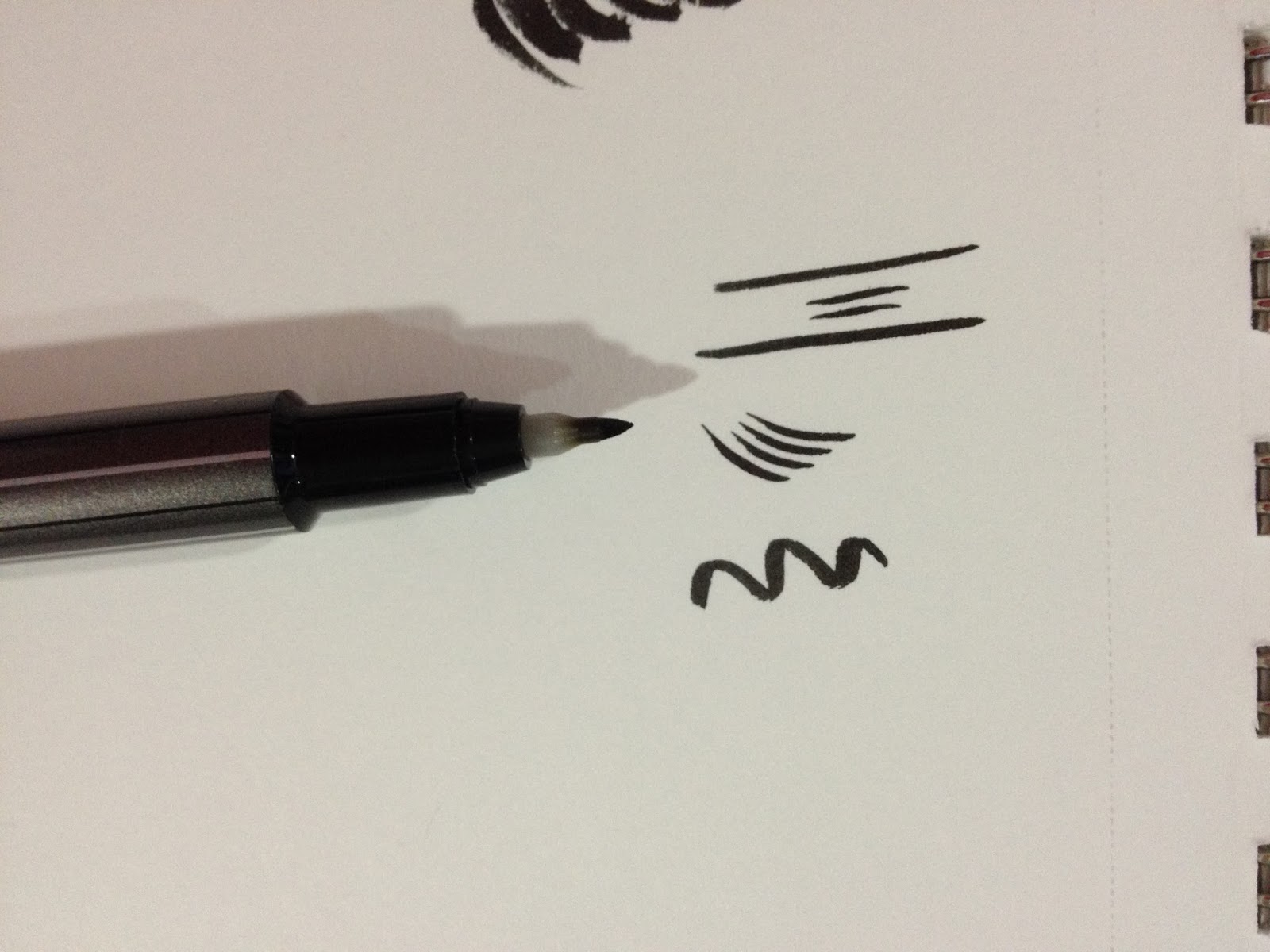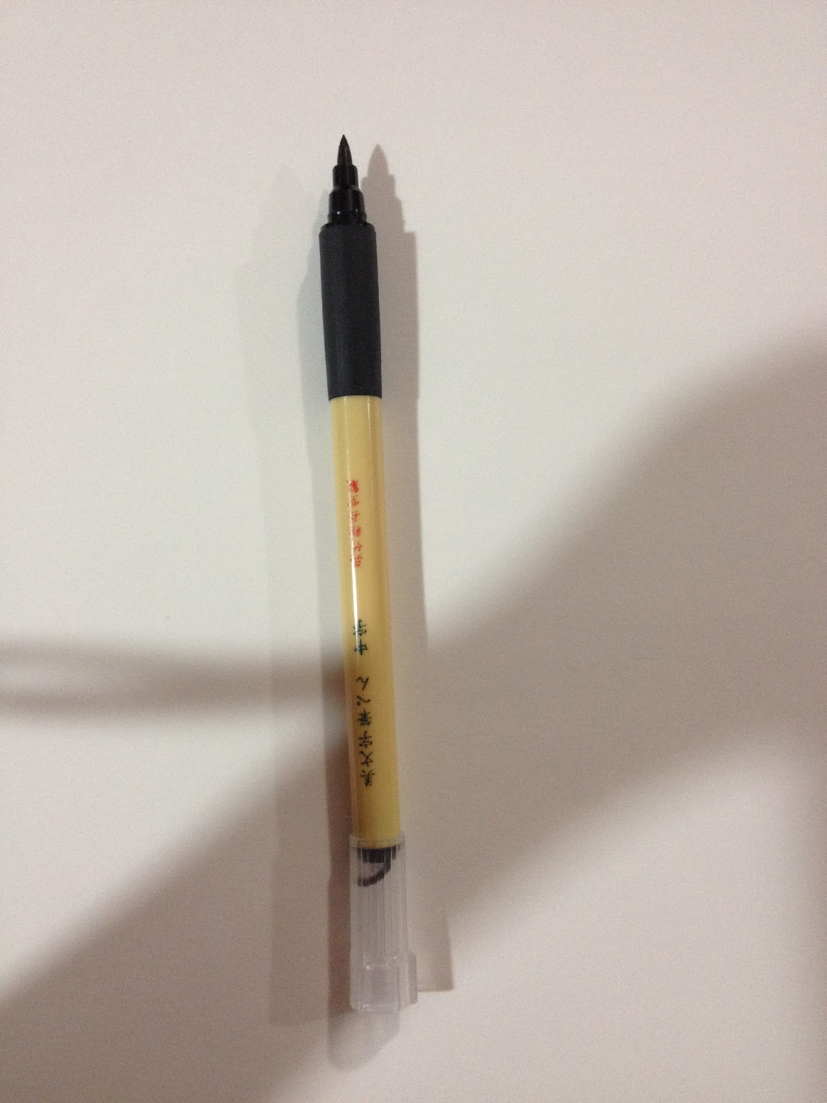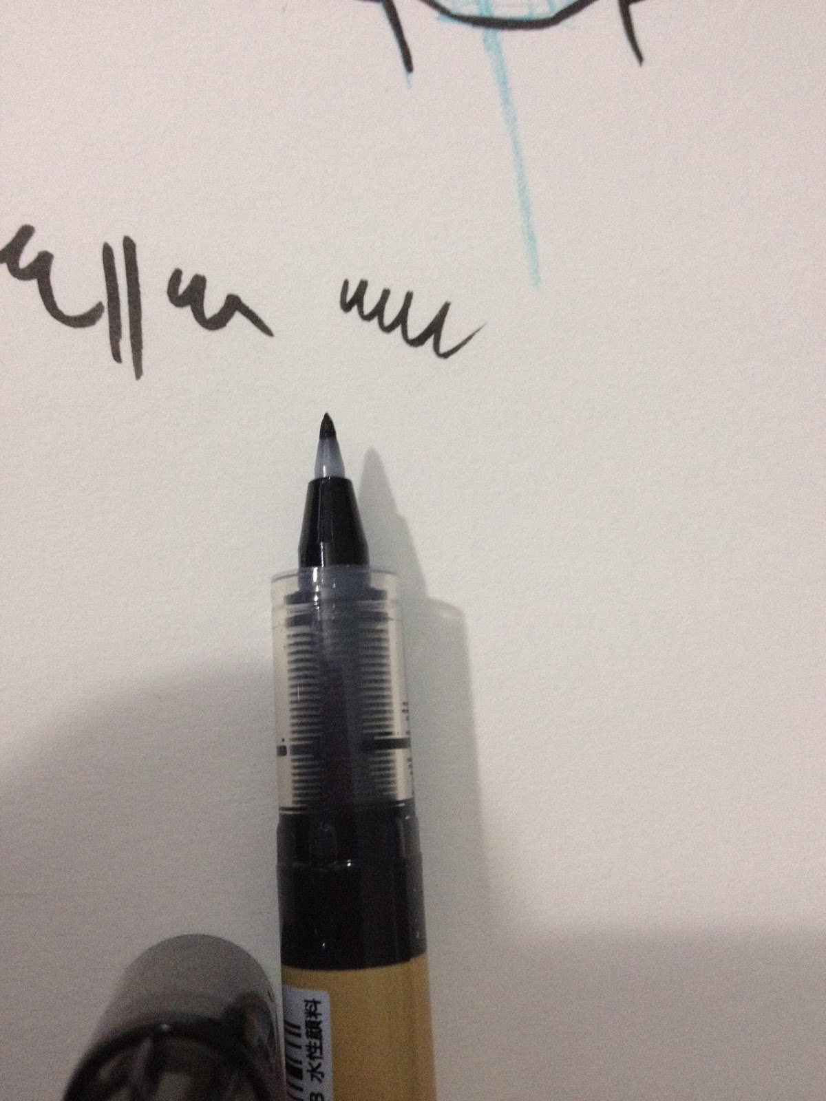 The Bimoji is quite aesthetically pleasing, and meant to mimic the look of an actual calligraphy brush. I'm not sure how many artists would actually hang the Bimoji by the little nylon cord at the back, but it's a cute touch. The Bimoji is also the only disposable fude pen I've encountered that has a plastic grip, which is also a nice touch, although I've never felt like I've needed one in the past. This grip isn't much softer than the body of the pen itself, but it does have a rubber texture that makes the pen slightly easier to hold. The grip would probably be very welcome if you had sweaty hands.