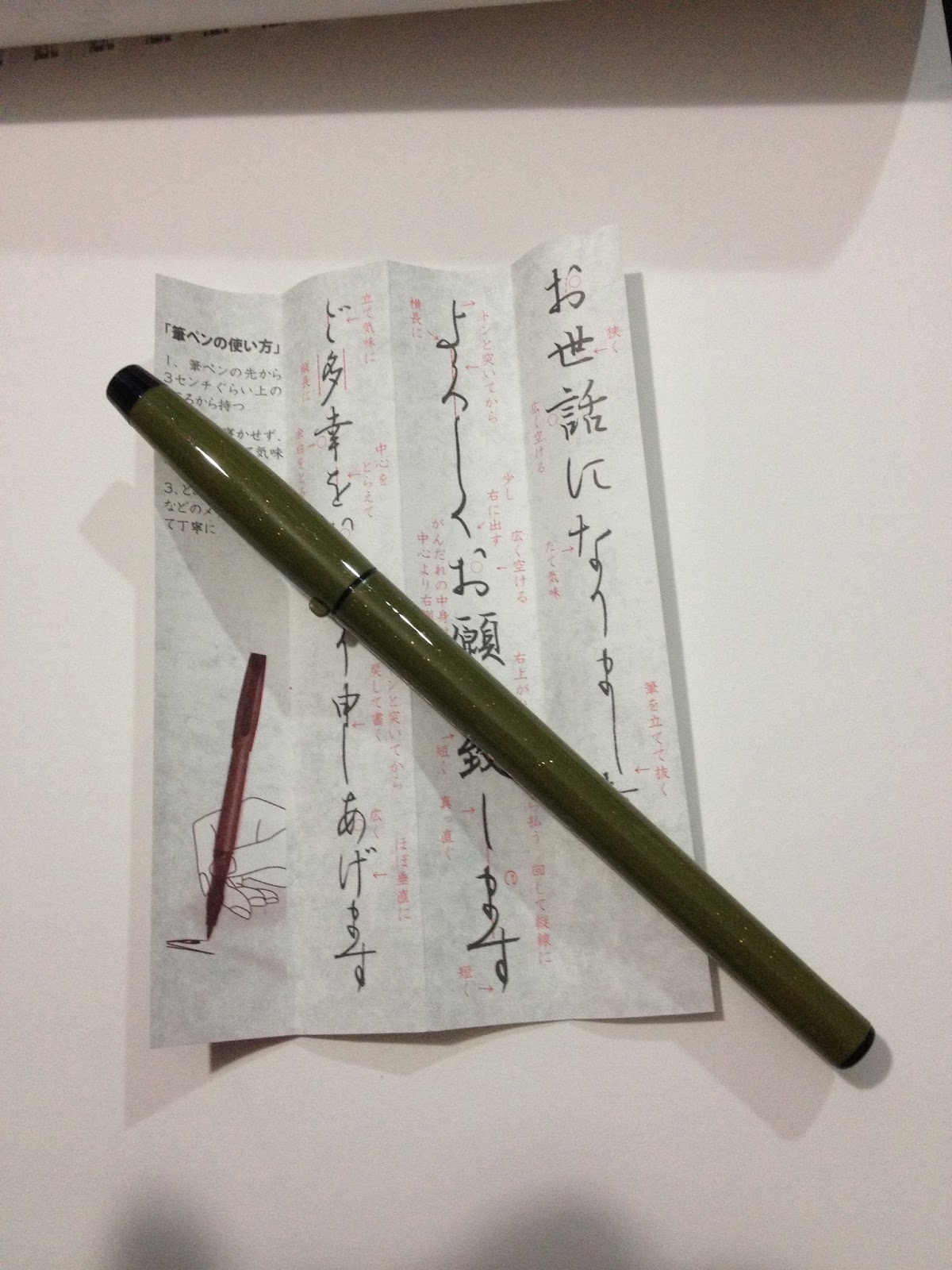The package is written entirely in Japanese, but there're a couple things even I can understand- the size of the pen tip (large) and the suggested method for holding the pen.