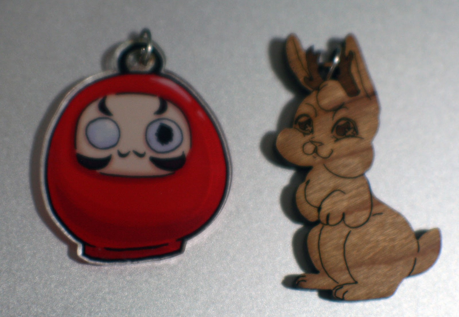 InkIt double-sided full color charm vs Ponoko wooden charm. This Jackalope can be found at Nattoshop.