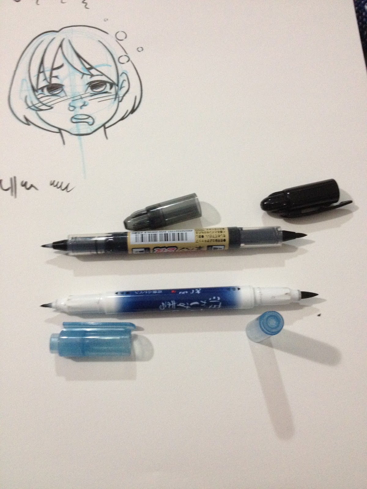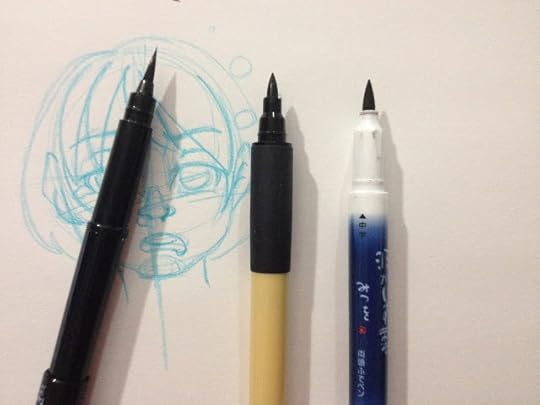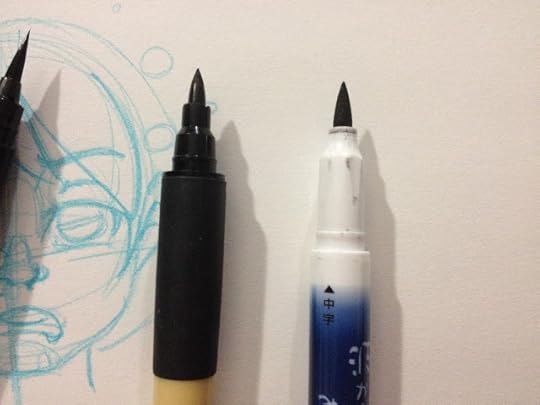For those of you who don't know, my setup is extremely humble over here. One smartphone (an iPhone 4S), one Google Drive account with additional storage to facilitate the transfer of photos, one sketchbook, one non photo blue mechanical pencil, one pen at a time (these days). There's also one Becca, which is sometimes the hardest thing of all to have in such short supply, because there's always so much I want to do. Although I try to stay consistent, sometimes I fall behind, caught up in the hustle of attending conventions, making new merchandise, endless painting, and testing new supplies. I'm sure there's someone out there who would be happy enough to do some light interning in return for art supplies, but I'm not so sure it's a job I'd want to hand over to anyone else. Part of this is because I'm a control freak- if my name is attached to something, I want to make sure it's right, but part of it is simply because I legitimately love testing art supplies, and I love testing best when there are no strings attached, no reader waiting with baited breath for my opinion between two brands. Maybe this is why the fude and brush pen reviews are my favorite, even though they are the least popular reviews on my blog. I am reviewing these pens for my own enjoyment. Of course, the fact that it requires far less financial investment to review even a large set of colored fude pens than it does to review enough alcohol based markers to form an opinion doesn't hurt a bit.