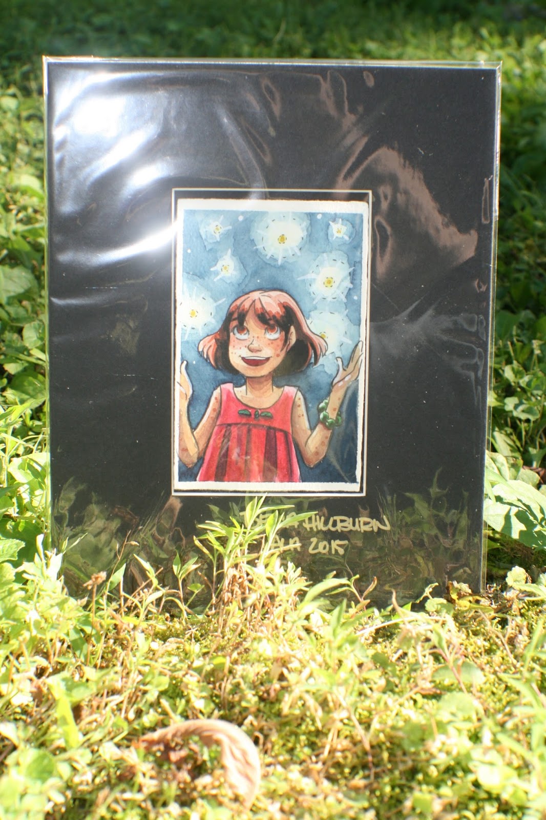 I'll be selling copies of 7" Kara Volume 1, promoting Gizmo Grandma: A Twisty Tale, and offering sketch commissions, as well as lots of other goodies that I'll be announcing soon on the Nattosoup Studio at ALA Facebook Event page. I'll have my portfolio handy, and I even plan on selling some of my original watercolor paintings to librarians looking to add some original art to their branch. For anyone who buys 5+ copies of 7" Kara, Volume 1 for their branch, I have a mini 4"x6", matted 7" Kara watercolor, as well as the other slew of adorable goodies that follow every book sale. Those little watercolors are already up on the Facebook event, so head on over and check them out.