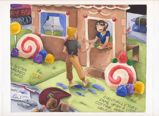 To apply for a table, I needed to submit an illustration for the original art auction. Below is the watercolor I whipped up for ALA, featuring Kara and Tanner playing in a pop up book.